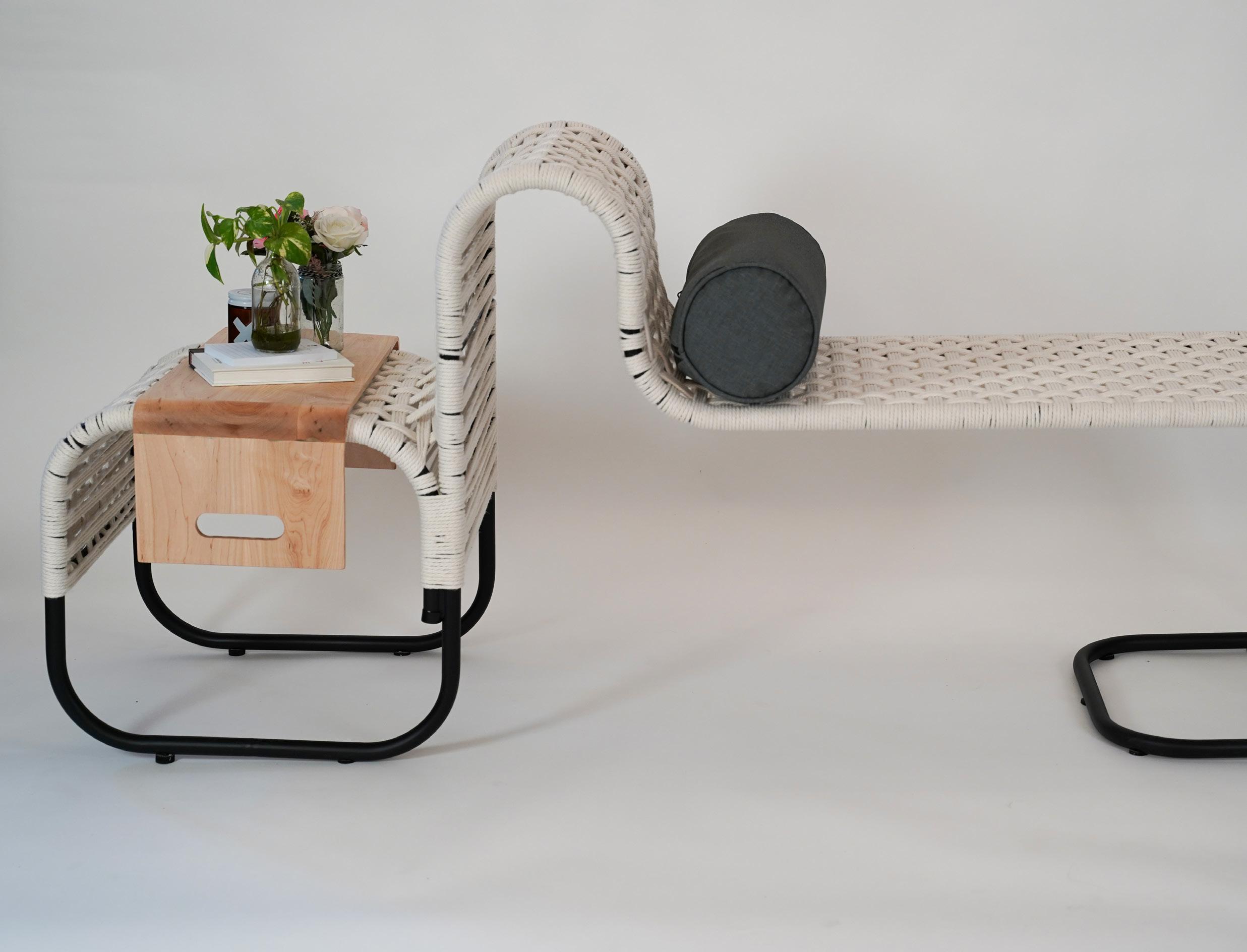 These pieces of furniture needed to show the diverging of forms and stitching them back together. The group drew inspiration from the shuffling of cards, as well as bringing the indoors and outdoors together. Through these ideas we created a collection of furniture that resides in a sunroom. These pieces help enhance the more permanent furniture that already exists within the space. Weaving became present not just in a physical sense, but also in the function. All the pieces can be used both for their traditional use and as a place to hold plants . Each piece diverges and is stitched back together to create a dynamic , complete set of furniture.