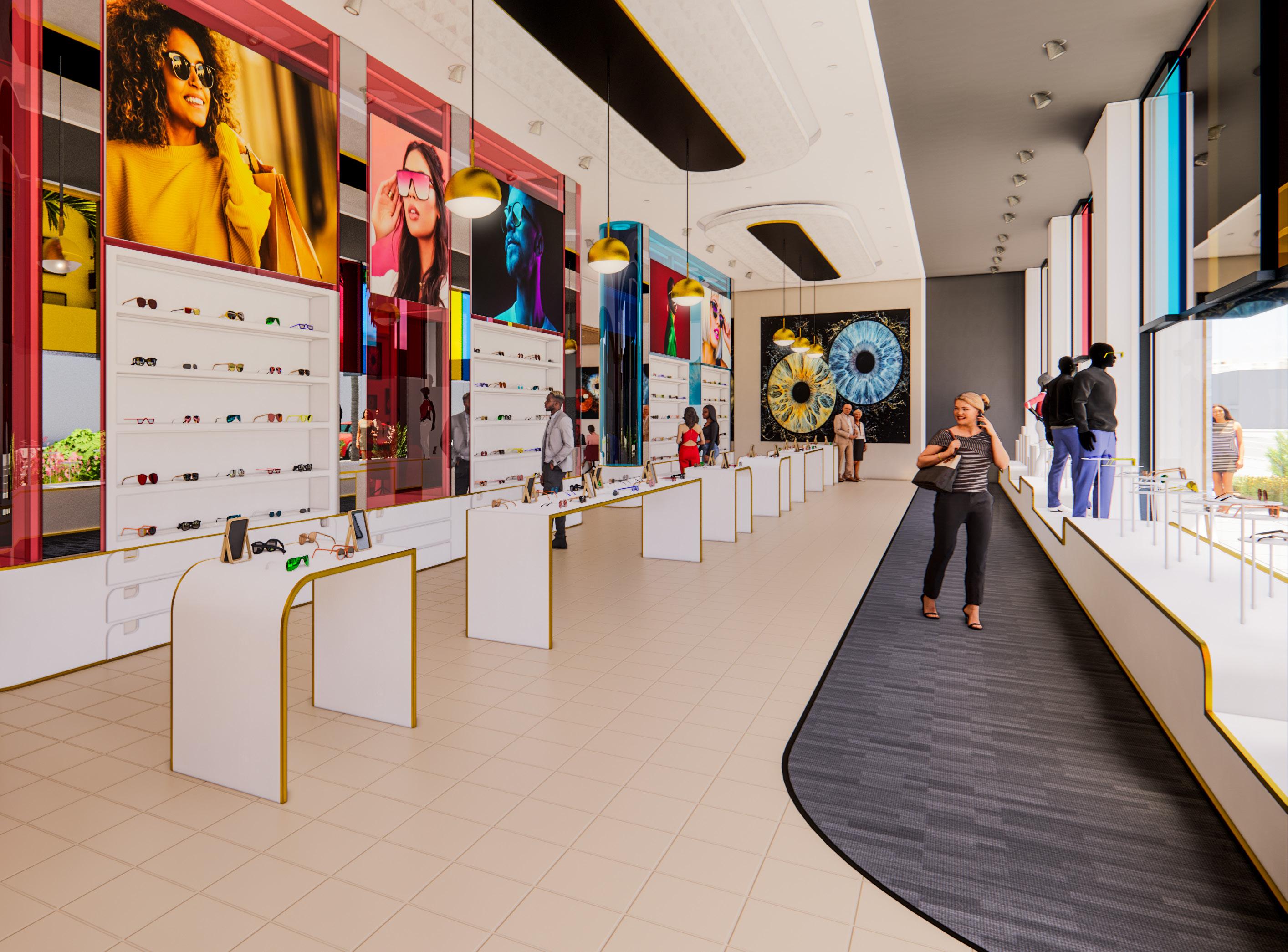 The tinted lens is a distinctive feature of sunglasses that draws attention to your eye. The curved edges of sunglass lenses can be utilized to disperse or focus light within the spaces. The motivation behind this project is to used these colored, reflective materials within the design in order to reinforce the idea of having layered, colored light appear on surfaces. The overall design will imitate the curved, enveloping shapes of sunglasses.
