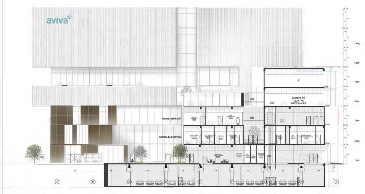 La Clìnica aviva esta situada en Chorrillos donde el ingreso es un jardìn libre diseñado como filtro que da paso hacia un hall principal con doble altura ,iluminando naturalmente.
