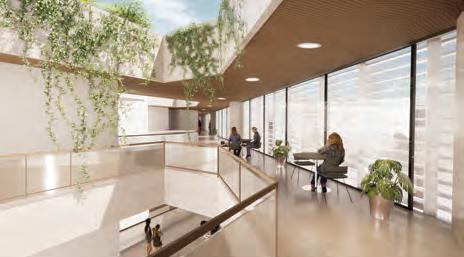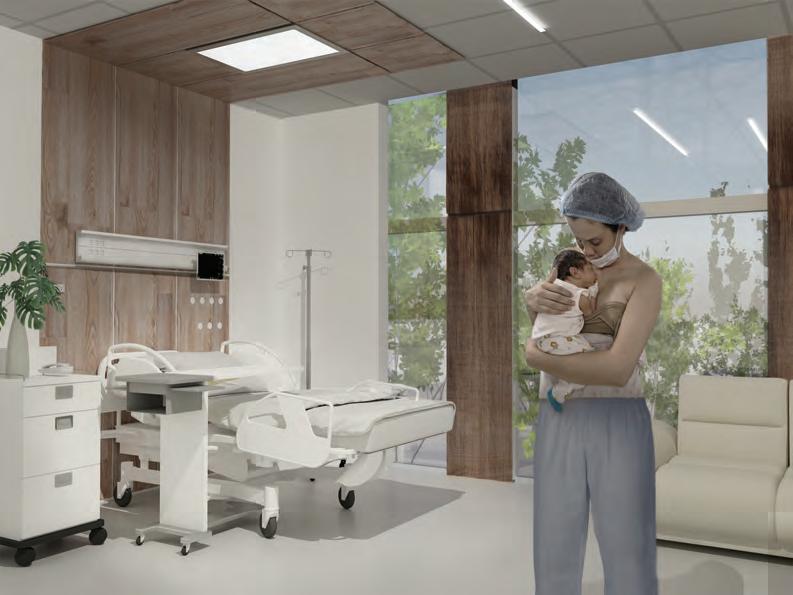 La salas de espera tienen una visualizaciòn de un patio con enredaderas permitiendo asi un ambiente mas saludable