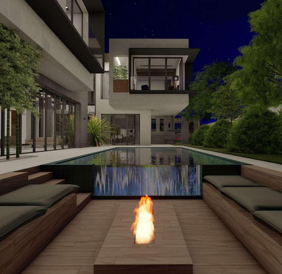 Creating a schematic layout for the swimming pool and details for the unique condition of the glass wall between the swimming pool and sitting area.