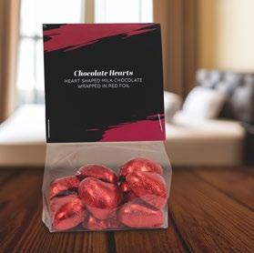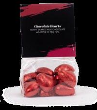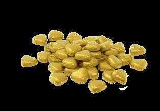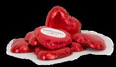 Chokladhjärtan med smak av mjölkchoklad förpackade i röd eller guldig folie, beställs om ca 140st (1kg).