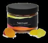 Burk fylld med olika typer av godis med egen designad etikett. Burkarna har hygienisk tätning under locket.