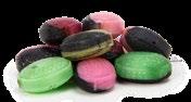 Karameller twistade och förpackade individuellt i cellofan eller metaliserat twistningspapper. Karamellerna finns med och utan fyllning och med många goda smaker. Går att få med logotyp tryck på karamellen för extra personlig touch (minsta mängd: 30kg)