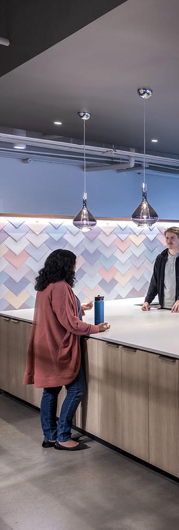 In NYC the new 57,691-squarefoot space right in the heart of the Flatiron district. At three times the size of their previous office, this space has key features that incorporate flexible workplace design principles, emphasizing the variety of work points and space types to support any number of work activities. rooftop terrace, and the stunning views of Madison Square Park, the space balances the diverse array of the team’s needs, featuring everything from reservable private