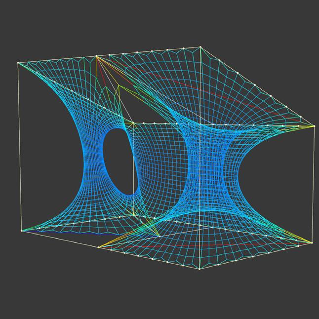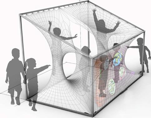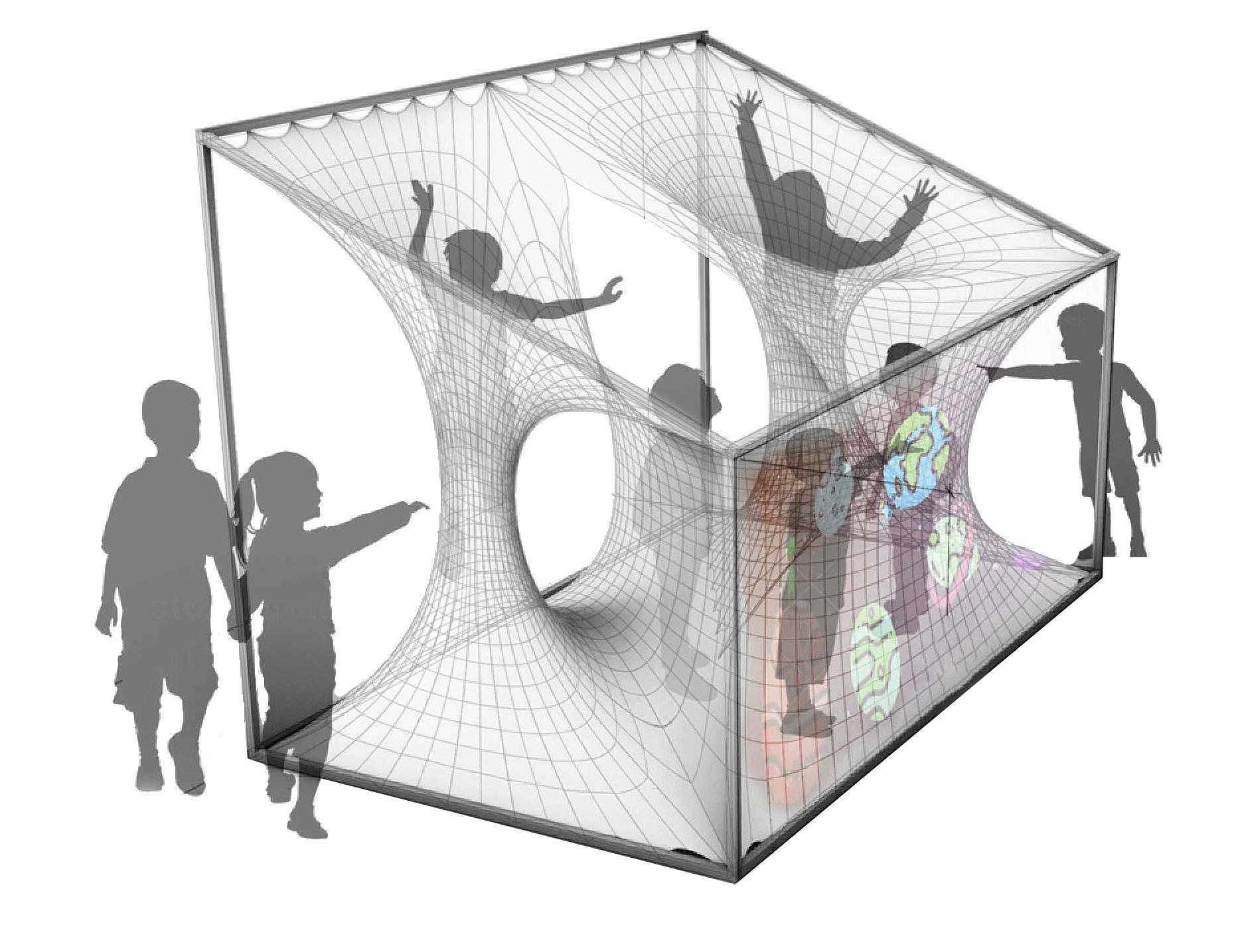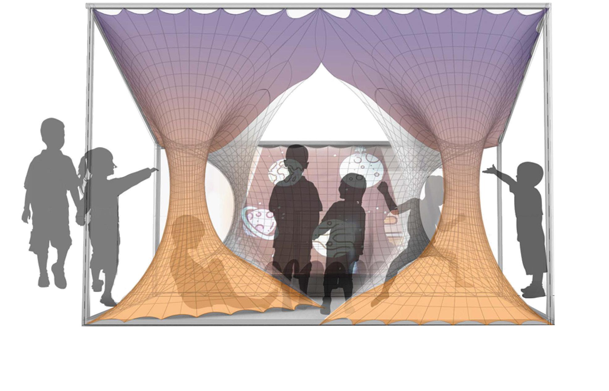 jection, we used one big panel surface to convey the interaction space. Two cylinders are used for children to investigating in, which are also connect ed with the planar mesh for enclosing the “inside