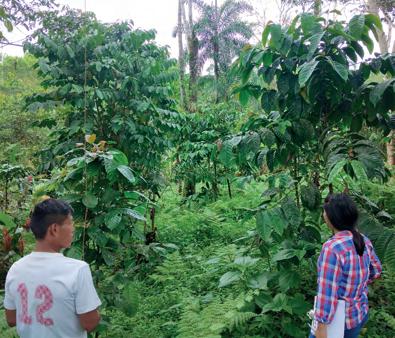 Jaqueline, die deel uitmaakt van de jongerengroep, monitort de aanplantingen in het Amazonegebied. Ze maakt een inventaris op van de verschillende inheemse planten in het veld.