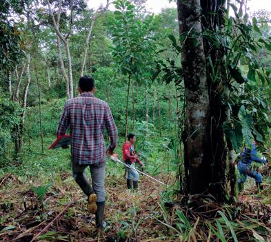 De gemeenschap volgt het onderhoud van het herbebost gebied op door metingen te doen van de overlevingsgraad van de aanplantingen.