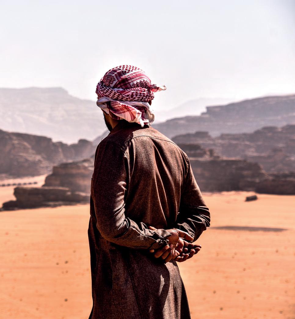 Tijdens onze expeditie doorheen de woestijn werden we getrakteerd op talloze verzichten en het unieke landschap van Jordanië. Tijdens één van onze stops in de Wadi Rum woestijn kon ik een foto nemen van onze gids die zelf even een moment nam om te genieten van de prachtige rotsformaties. Net zoals wij dat 12 dagen lang mochten doen op onze groepsreis. Ik kan de reis trouwens niet in 1 woord beschrijven, maar als ik iedereen één iets mag aanraden: gewoon meteen Jordanië boeken!