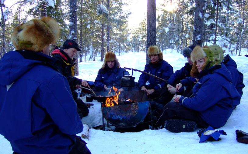 traditionele Finse smoke -sauna. We genieten van het prachtige zicht op de omgeving vanuit de jacuzzi en het relaxatiebad. De echte adrenalinezoekers kunnen zich wagen aan een korte dip in het ijskoude meer. Zwemmen bij temperaturen die ver onder het nulpunt liggen is ongetwijfeld een onvergetelijke ervaring!