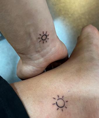 "Tattoos? Daar zou ik nooit aan beginnen en al zeker niet zonder over na te denken. Dit was ik dan toch even uit het oog verloren aan het einde van een zalige groepsreis. Tijdens onze laatste momenten samen in India besloten we impulsief dat een tattoo het perfecte aandenken zou zijn. Na kort maar toch grondig even research te hebben gedaan (want in Delhi weet je maar nooit), stapten we de tattooshop binnen. We kozen ieder een eigen ontwerp, maar toch verbonden door het geheel van de zon, maan en sterren. Ook kozen we alle drie een andere plaats, maar toch verbonden door de herinnering en het avontuur in India. Ik vind het heel fijn dat de tattoo voor mezelf zichtbaar is, zodat ik af en toe kan terugdenken en wegdromen over de reis. Zeg dus nooit nooit, want wie weet verleg je toch ook die grens op groepsreis. En wie weet volgen er nog …"