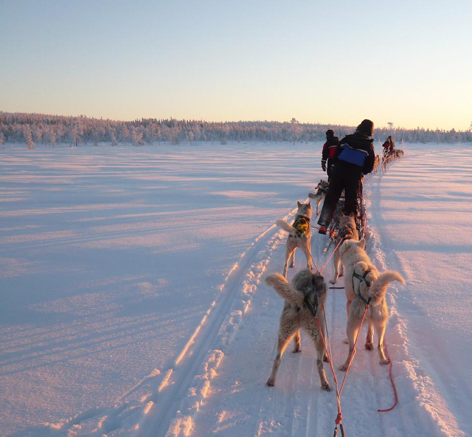 pen naar Pallas Ylläs Nationaal Park. Iedereen verzorgt zijn eigen honden en ’s avonds overnachten we in gezellige blokhutten.