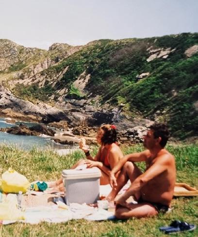 “Ik zocht naar een tattoo om samen met mijn zus te zetten. We hebben nogal een andere stijl, dus het was niet makkelijk. Onze vakanties in Asturias kwamen steeds weer naar boven als mooie herinneringen. Een trouwe metgezel tijdens die reizen was onze classic 90's frigobox, die ons voorzag van de beste picknicks. Eens dat idee in mijn hoofd zat, kon ik het niet meer loslaten. Mijn zus dacht aan de ijsjes die we dagelijks aten en liet een twisterijsje tatoeëren. We hebben ook "hermana" (zus) en "hermanita" (kleine zus) laten zetten, en onze mama heeft "madre" gezet op haar 64e, haar eerste tattoo! Het is ook een kleine ode aan papa, die vijf jaar geleden overleed.