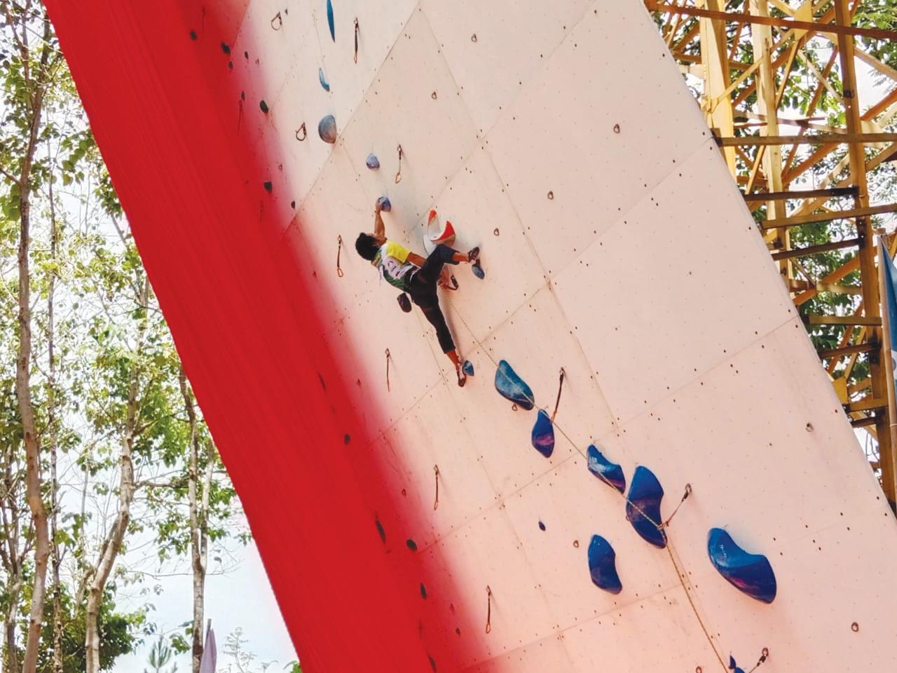 let panjat tebing Kabupaten Bekasi Bim Sigrid berhasil me nyelesaikan babak final di no mor lead word record peroran gan putra yang berlangsung di SOR Jalak Harupat, Kabupaten Bandung, Kamis (10/11). Cata tan waktu 2.18 detik men