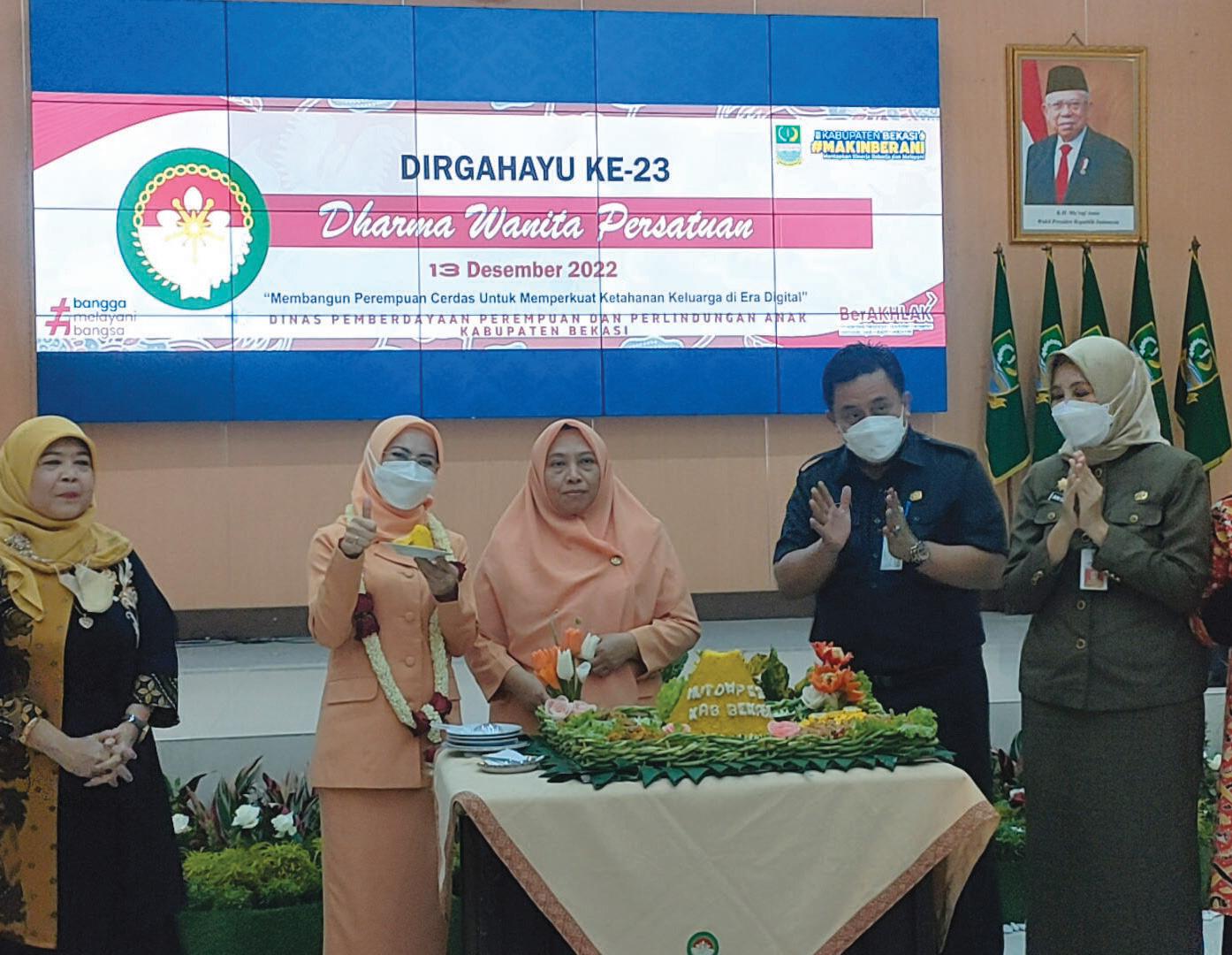 - Penjabat Bupati Bekasi Dani Ramdan beserta istri menghadiri puncak Hari Ulang Tahun (HUT) ke-23 Dharma Wanita Persatuan (DWP) tingkat Kabupaten Bekasi di Gedung Wibawa mukti, kemarin (13/12).