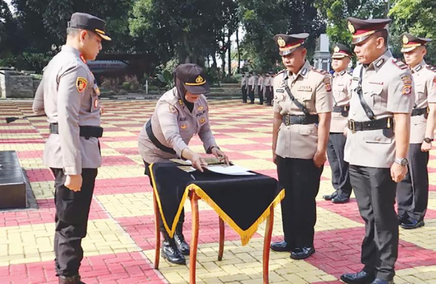 SERAH TERIMA : Kapolres Purwakarta, AKBP Edwar Zulkarnain pimpin upacara serah terima jabatan (Sertijab) Wakapolres dan dua Kapolsek di Polres Purwakarta, pada Senin (16/1/2023).