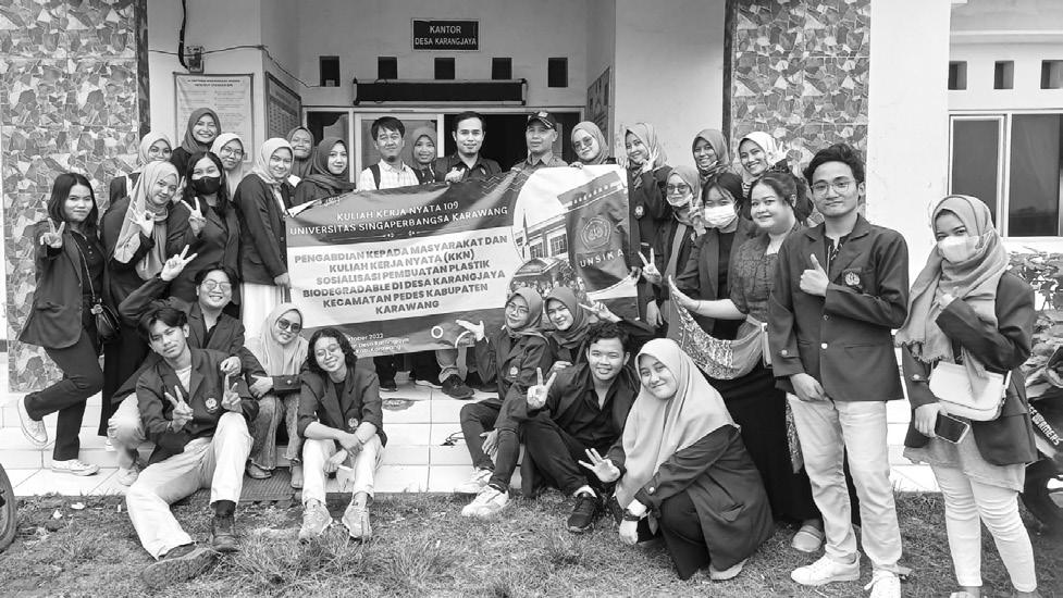 KARAWANG - Mahasiswa Kuliah Kerja Nyata (KKN) dan Dosen Unsika melak sanakan pengabdian kepa da masyarakat di Desa Ka rangjaya, Kecamatan Pedes.