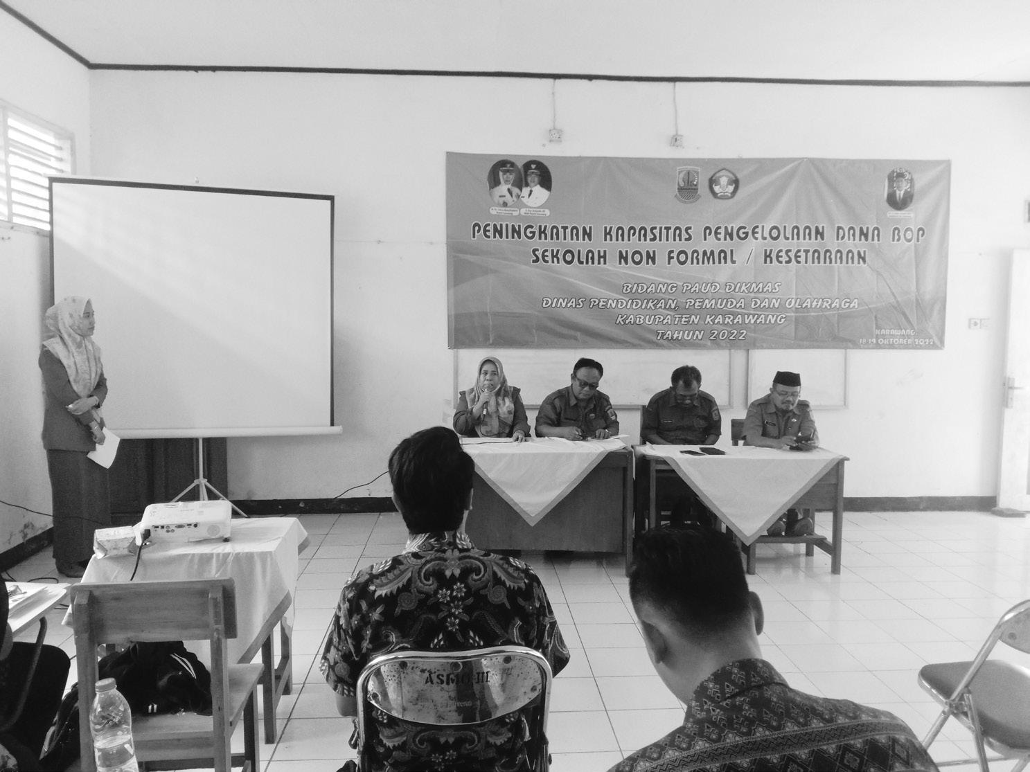BIMBINGAN: Dinas Pendidikan Kabupaten Karawang menggelar kegiatan “Peningkatan Kapasitas Pengelolaan Dana BOP Sekolah Non Formal/Kesetaraan” di Sanggar Kegiatan Belajar, Selasa (18/10).