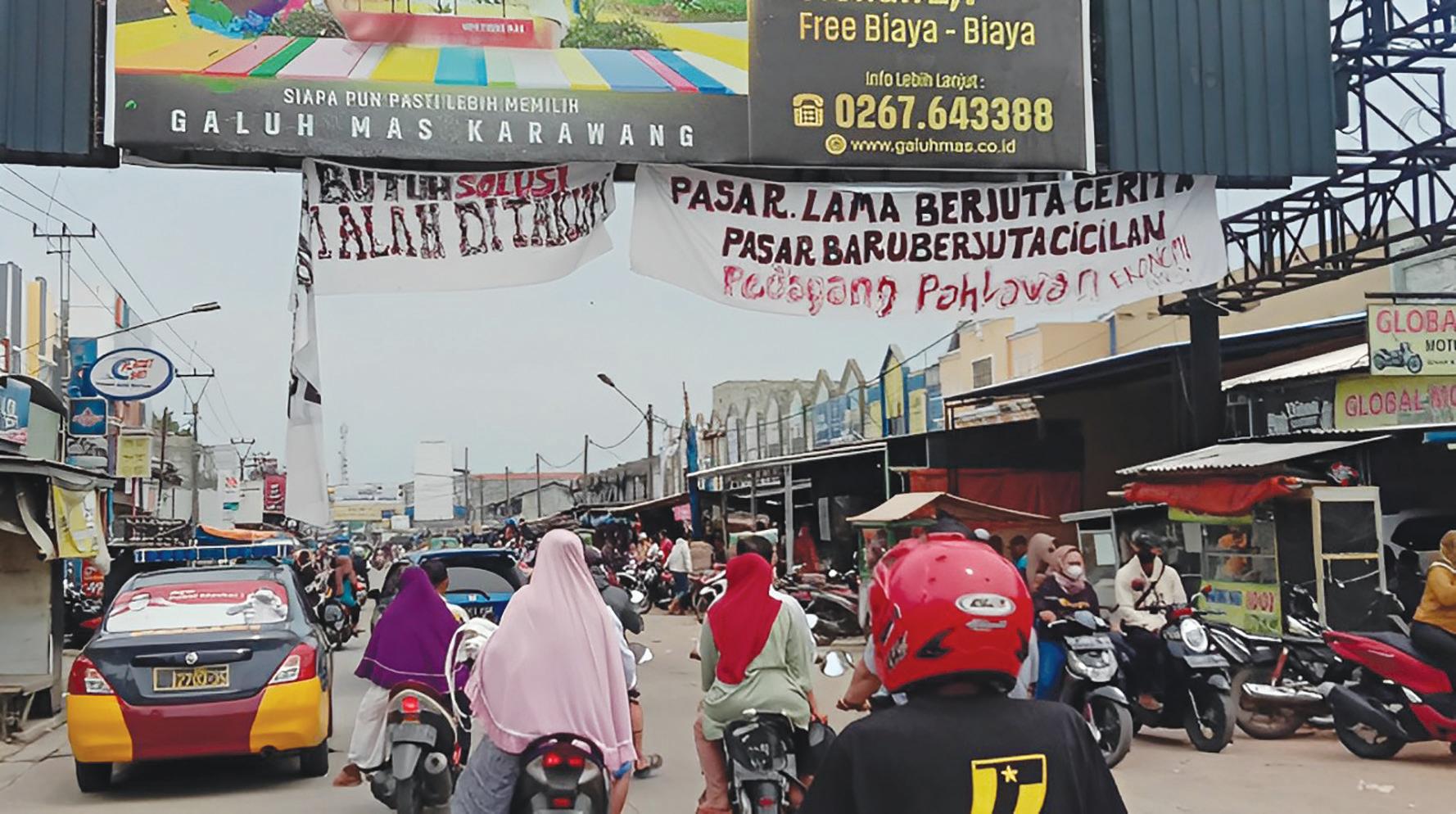 SOROT: Aparat gabungan yang ditugaskan merelokasi pedagang Pasar Rengasdengklok dipukul mundur oleh massa yang terdiri dari ormas dan para pedagang yang berakibat proses relokasi Kembali gagal.