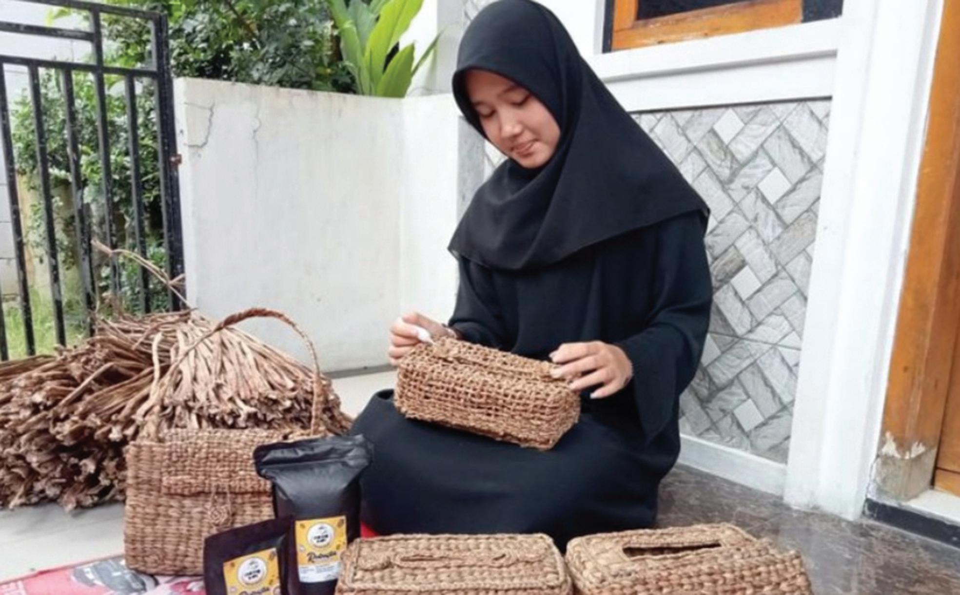 Ditangan dara cantik berusia 17 tahun itu tanaman gulma yang menganggu aktivitas warga saat menggunakan transportasi air di wilayah waduk jatiluhur itu disulap menjadi sebuah kerajinan tangan.