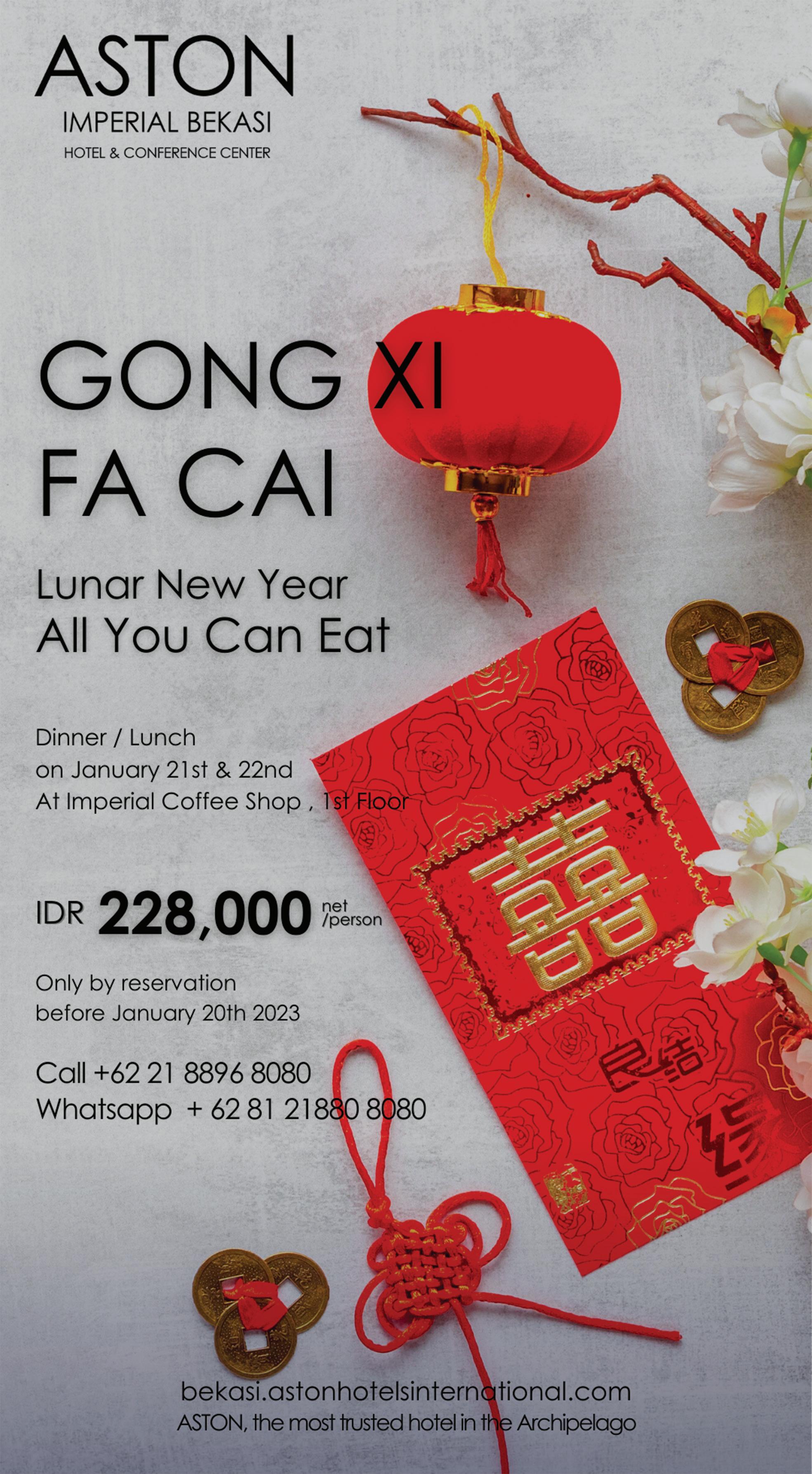 BOOK NOW cikarang.harperhotels.com Homelike Harmony JAWA BARAT by asto n HARPER CIKARANG A moment to celebrate happiness and prosperity Dinner to welcome the Lunar New Year On January 22, 2023, start at 6 and 9 p.m. 2023IDR 188,000 net per person IDR 828,000 net* per room/night *Terms and conditions apply: Stay in Superior Room and enjoy our breakfast for 2 persons, Welcome Drink upon Arrival, Free Entry into Fitness Center Complimentary Santang Orange in The Room, Valid until 31 January 2023 Year of the Rabbit 2023 Chinese New Year Dinner For Information & Reservation call us at 021 3971 8888 or WhatsApp 0819 0819 3987 cikaranginfo@harperhotels.com Istimewa SEKILAS: Perusahaan Daerah Air Minum (PDAM) Tirta Bhagasasi Kabupaten Bekasi, targetkan cakupan layanan air bersih sekitar 70 persen dengan produksi air minum dalam kemasan (AMDK) PDAM Tirta Bhagasasi Target Cukupi Air Bersih 70% Warga Bekasi Mulai Produksi Air Kemasan Awal Maret ISTIMEWA SOROT: Pihak Dinas Lingkungan Hidup (LH) Kabupaten Bekasi sudah memetakan sejumlah titik lahan milik warga untuk perluasan Tempat Pembuangan Akhir (TPA) Burangkeng di Kecamatan Setu, Kabupaten Bekasi
