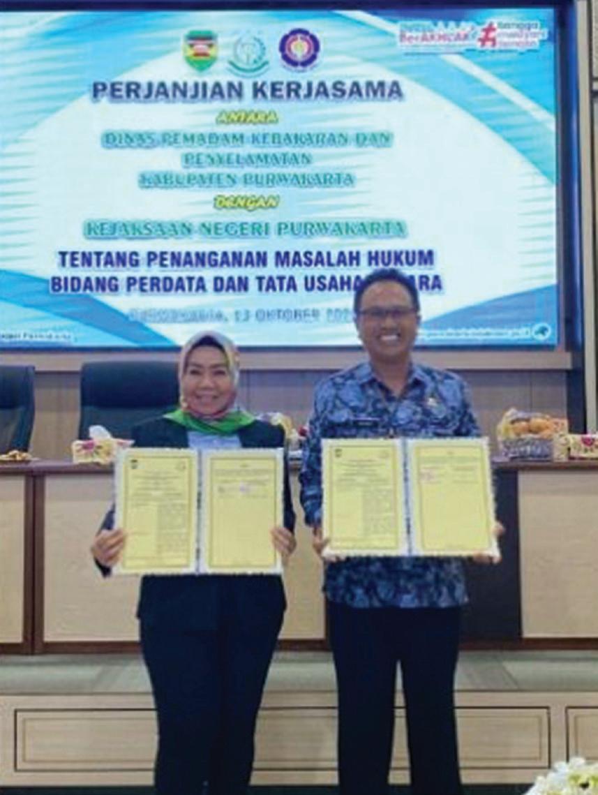 Adapun penandatangan perjanjian kerjasama antara Kejari Purwakarta dengan Dinas Pemadam Kebakaran dan Penyelamatan. Serta Disporapar bud tersebut tentang penanganan masalah hukum Bidang Perdata dan Tata Usaha Negara (Datun).