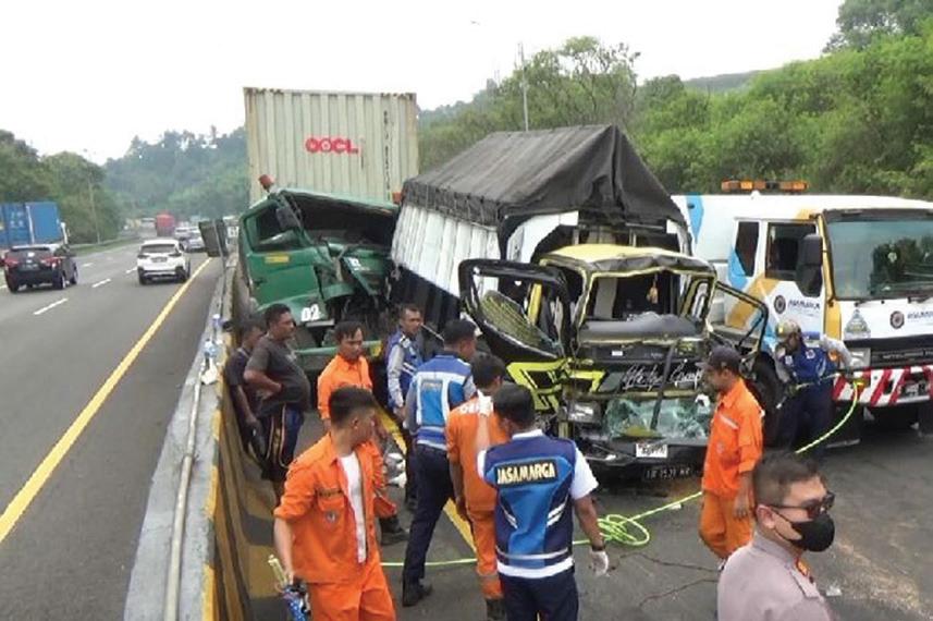 EVAKUASI : Kecelakaan beruntun melibatkan tiga truk di Tol Cipularang KM 92, Desa Pasirmunjul, Kecamatan Sukatani, Kabupaten Purwakarta, pada Rabu (19/10/2022).