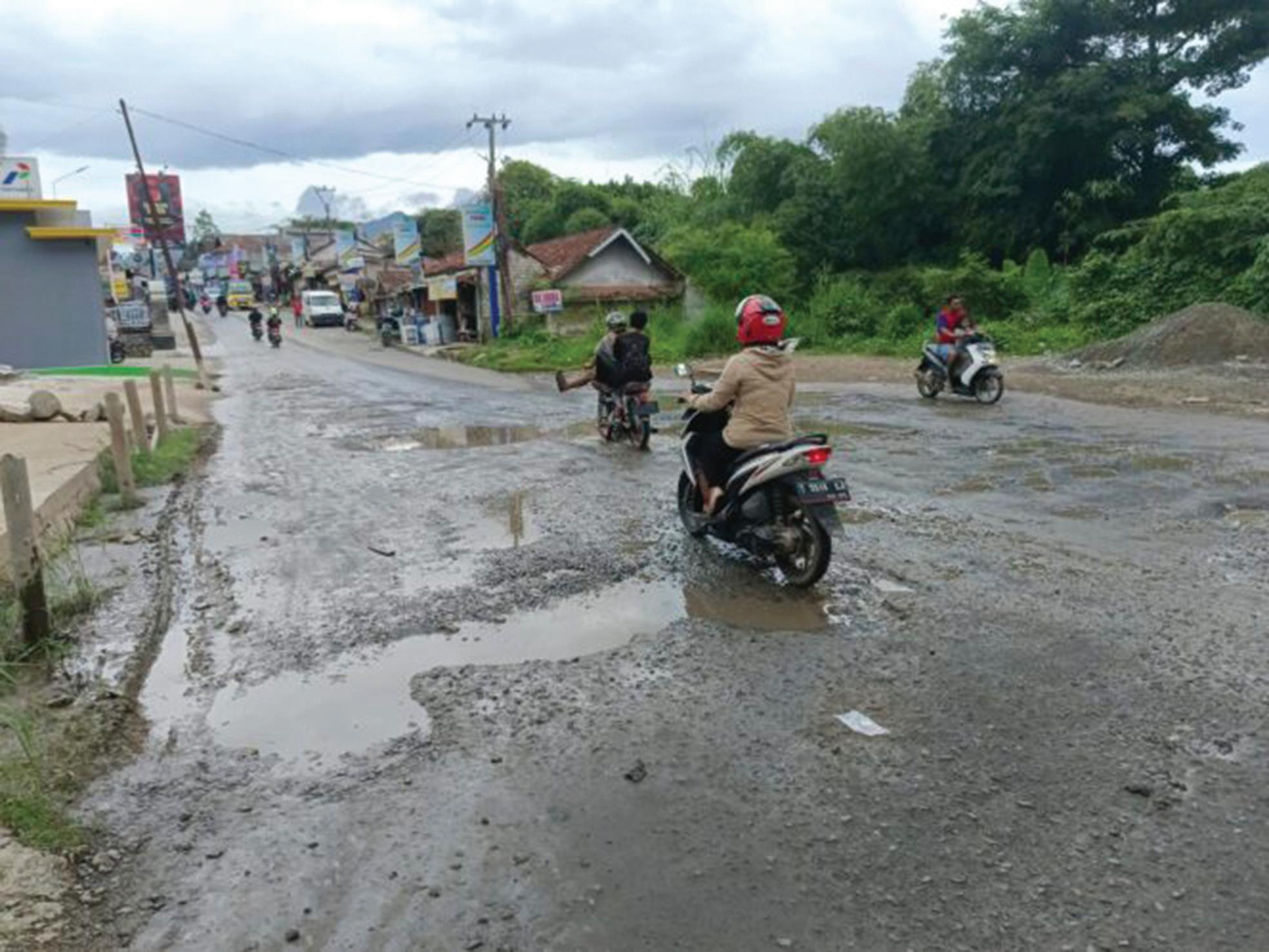 tornya pernah hilang kendali akibat kubangan di Jalan Raya Anjun. Beruntung, masih bisa mengendalikan sepeda motor yag ditumpangi sehingga tidak terjatuh ke aspal. Yah memang-