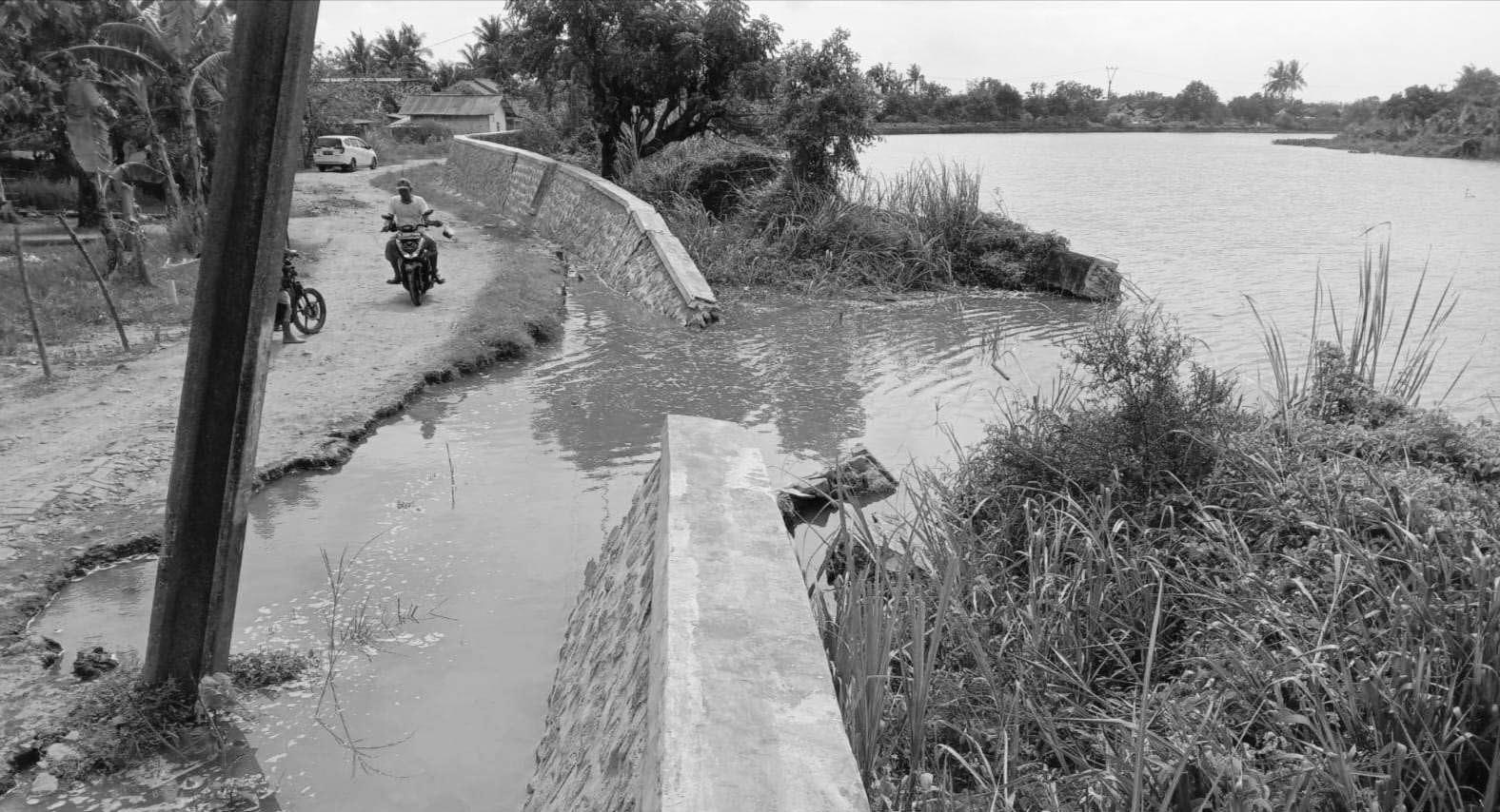 "Tanggul jebol ini terjadi di dua titik, pertama di Kampung Solokan Kendal Desa Pantai Bahagia, dan yang