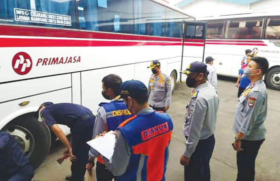 KABUPATEN BEKASIMenjelang pergantian Tahun Baru 2023, Dinas Perhubungan (Dishub) Provinsi Jawa Barat melakukan Ramp Check atau inspeksi keselamatan mendadak kendaraan umum di Terminal Cikarang, kemarin (27/12). Kasubbag Tata Usaha