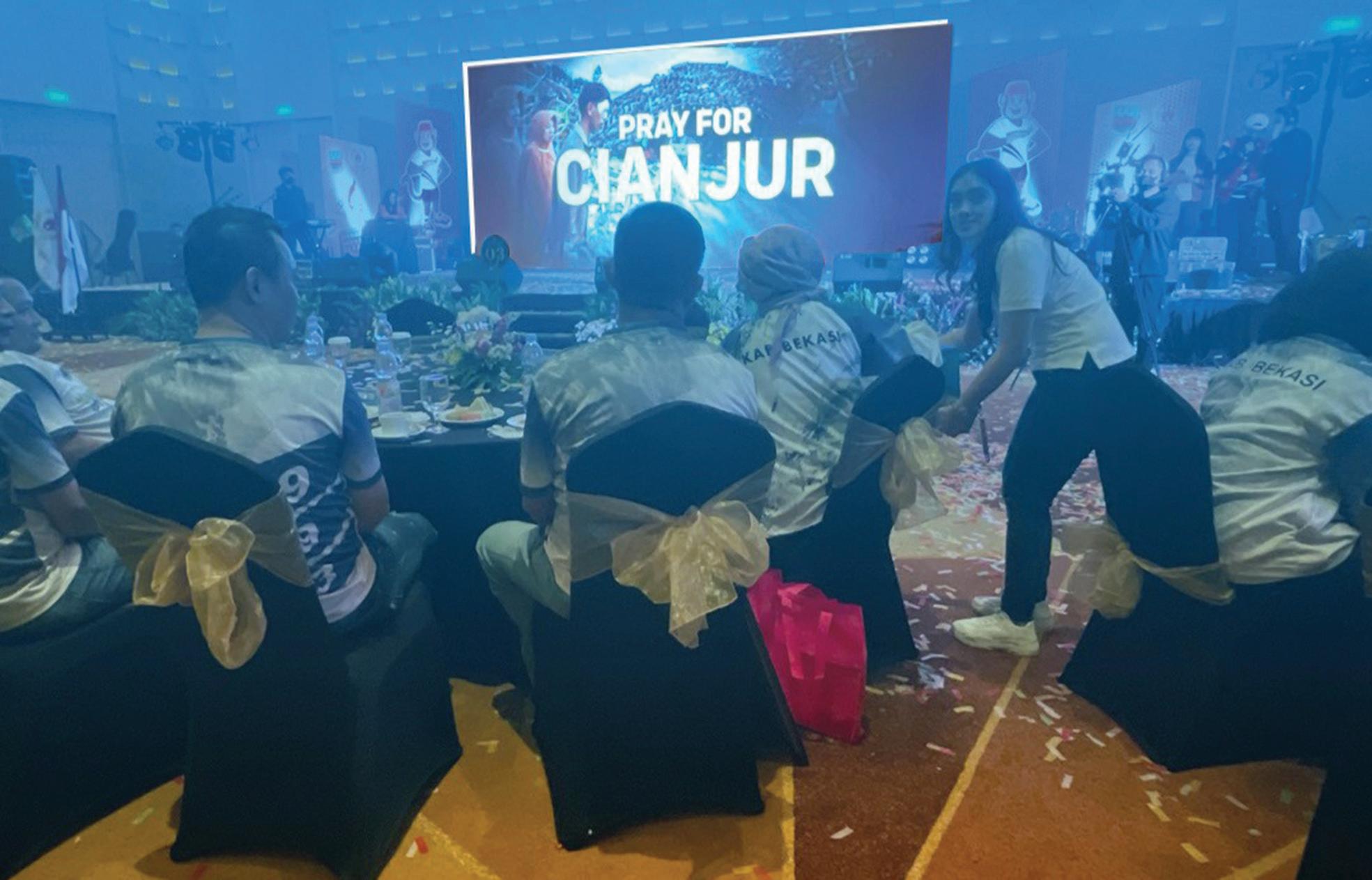 Dirinya mengapreasiasi keg iatan malam apresiasi juara umum dengan konsep peng galangan dana korban gempa bumi Kabupaten Cianjur.