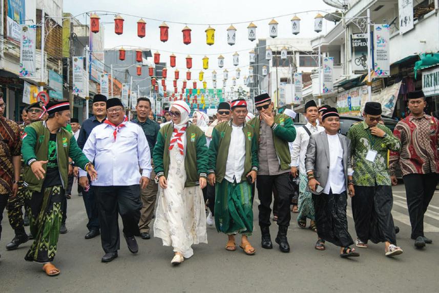 MEMPERINGATI : Kiayi, Ajengan, dalam kirab tersebut juga di ikuti Bupati Purwakarta Anne Ratna Mustika beserta jajaran Forkopimda setempat ikut konvoi berjalan kaki dengan gema iringan sholawat menyusuri Jalan Sudirman, PasarJumaah hingga ke Alun-alun Pemkab Purwakarta.