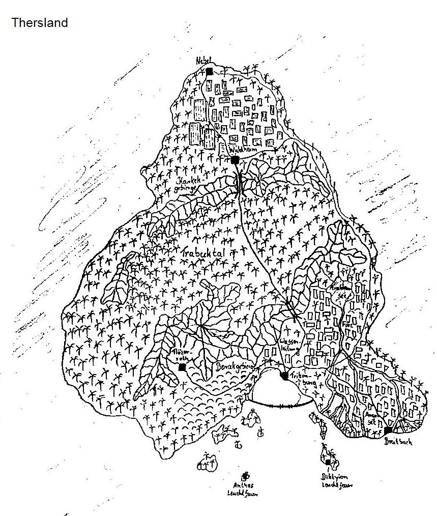 Info: Das bisher weltabgeschlossene Kleinreich in der See von Dirhael zwischen Dirhael und Dirzunhael auf Karcanon gelegen will künftig von der Hauptstadt Tribenburg aus als Handelsnation nicht nur im Machairas von Kezunsea mitmischen. Allein Magier und missionierende Priester sind auf der Insel nicht gern gesehen, fühlen sich dort jedoch auch unwohl, weil Zauber nicht wirken.