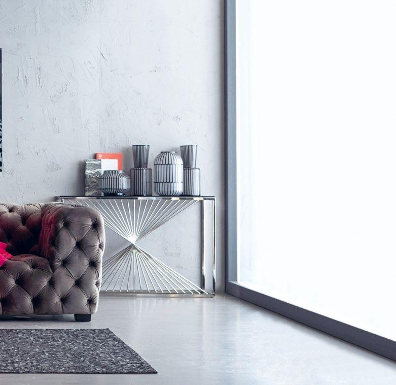 DINING TABLES 236 CHAIRS 256 SIDEBOARDS & DRESSERS 274 CONSOLES 298 SHELVES & CABINETS 308 BARS 320 SOFAS 328 ARMCHAIRS 364 STOOLS & POUFS 380 UPHOLSTERED BENCHES 382 SIDE & COFFEE TABLES 386 HOME OFFICE 408 BEDS 418 COAT RACKS 426 CARPETS 432 MIRRORS 444 OUTDOOR 462 CONTRACT BUSINESS 8 MODERN LOFT 26 MORDERN WOOD 58 SOFT GLAM 76 RETRO ELEGANCE 92 METROPOLIS 122 MODERN ELEGANCE 136 ELEGANT WOOD 164 CIGAR LOUNGE 188 INDUSTRIAL LOFT 202 URBAN NATURE 214 elegance assortment modern cosy living CONTENT 5 HOME COUTURE KARE DESIGN