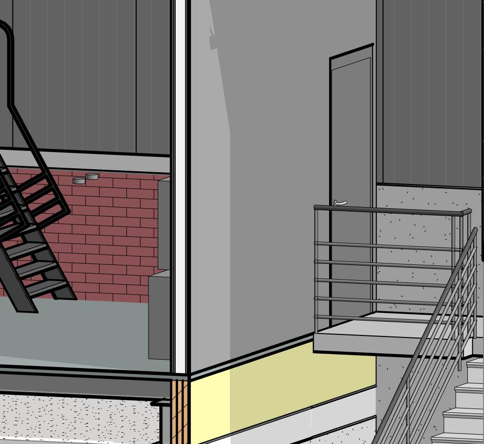 AT METAL STAIRS -TYPICAL AT EAST & WEST BUILDINGS.