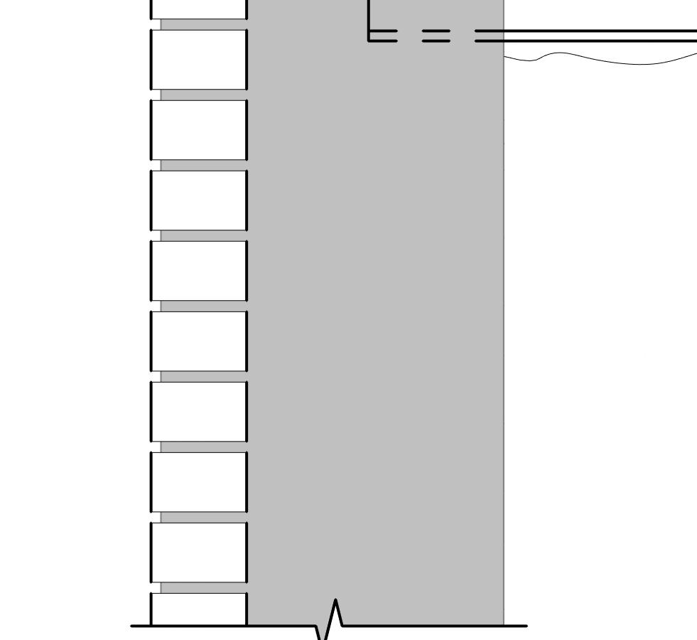 • ALL SECTIONS & ELEVATIONS ARE TYPICAL AT EAST AND WEST BUILDINGS. 0 6" 24" 1'2" N EXISTING BRICK AND CONCRETE WALL EXISTING BRICK AND CONCRETE WALL SEE 4 A-305 FOR PIPE DETAILS. METAL PANEL WALL WELD METAL PLATE TO PIPE RAIL TO SUPPORT 50 PLF AT TOP WITH 200 LB CONCENTRATED FORCE. -SEE STRUCTURAL DRAWINGS