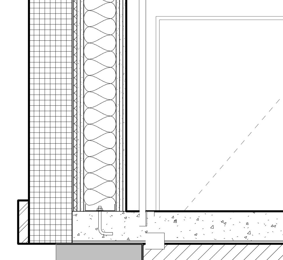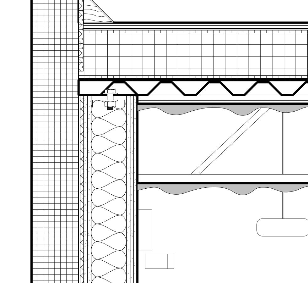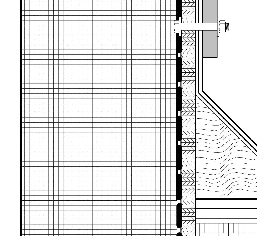 TOP OF ROOF DECK 86'-3" 4" ROOF LEVEL 86'-11 61/256" W1 3/4" 8" 6" 5/8"5/8"5/8" 9 3/4" SEALANT FASTENER SEALANT 5/8"5/8"5/8" NEW LEVEL 8UPPER MACHINE ROOM 76'-0" 2 HR SPRAY-ON FIRE-PROOFING AT METAL DECK & STEEL BEAM - SEE 4 A-601 STEEL BEAM SEE STRUCTURAL DWG ADD OR REMOVE CONCRETE AS REQUIRED BY DECK OR BEAM BEARING - SEE STRUCTURAL DWG ANCHOR STUDS TO CONCRETE SLAB ON METAL DECK. SEE STRUCTURAL DWG CONTINUOUS BASE FLASHING WITH WEEP HOLES @ 24" O.C. VAPOR BARRIER MEMBRANE (DASHED) 6" LT. GA. STEEL STUDS @ 16" O.C.SEE STRUCTURAL DWG INSULATED METAL WALL PANELS - ATTACH TO STEEL STUDS PER MGFR STANDARD DETAILS ON SHEET A 303 2" 8" CONTINUOUS PROJECTED METAL PANEL BASESEE 1 A601 EXISTING BRICK EXISTING CONCRETE WALL 1 A-601 8" 9 3/4" TOP OF PARAPET 88'-6" TOP OF ROOF DECK 86'-3" 8 " SLOPE PAINTED HOLLOW METAL 1 1/2 " DIA. GUARDRAIL ON 3 SIDES OF HATCH BOLT CURB WITH ANGLE TO CONTINUOUS 8 X 12 WOOD BLOCKING - FRT INSULATED INTEGRAL ALUMINUM CURB WITH FLASHING LEGS ON 4 SIDES