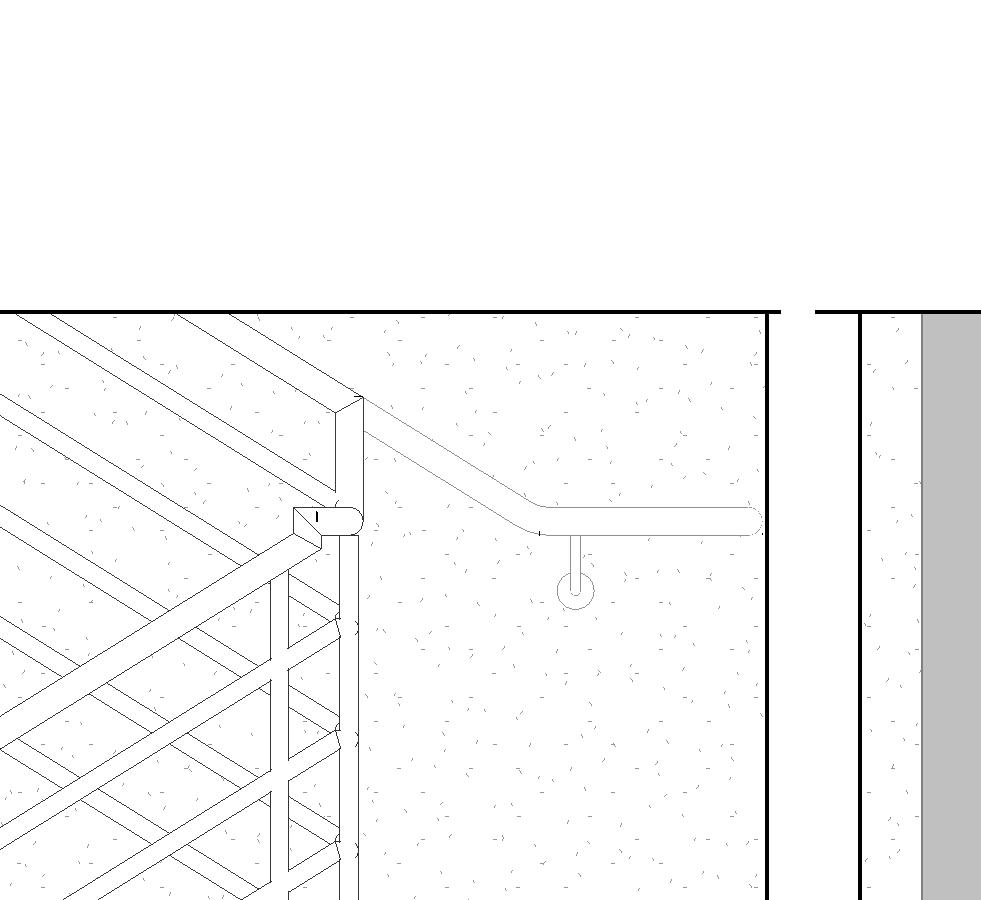 RAIL NEW OR EXISTING WALL 1 1/2 DIA. H.M. WALL RAIL - PAINT METAL BLOCKING AT NEW CONSTRUCTION. PROVIDE LAG BOLTS WITH NONSHRINK GROUT AT EXISTING CONCRETE OR CMU TYPICAL. ESCUTCHEON PLATE - TYP. AT TOP OF STAIR AT BOTTOM OF STAIR A.F.F. PLAN SECTION NEW ALUMINUM COPING & PARAPET NEW ROOFING & INSULATION
