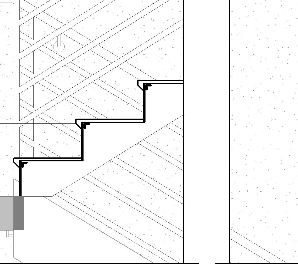 ROOF HATCH - AS PER BILCO BIL. GUARD 2.0 HATCH RAILING SYSTEM - RL-2-5 36" 36" FOR FLASHING DETAILS - SEE 5 A-305 FOR TYPICAL ROOF DETAILS, SEE 1 A-305 2 HR SPRAY-ON FIRE PROOFING AT DECK & JOISTS - SEE 4 A-601 W2 36" 30" ALUMINUM ROOF HATCH WITH CLOSER & HOLD-OPEN ARM BOLT LADDER TO FRT BLOCKING IN METAL STUDS SEE A 601 PAINTED STEEL LADDER LT. GA. STUDSATTACH TO BLOCKING METAL ROOF DECK STEEL JOIST - SEE STRUCTURAL DWGS. 6 1/8" V.I.F 3' -0" 3' -0" SEALANT MODIFIED BITUMEN ROOFING R-1 -SEE 1 / A-305 FLASHING SEALANT SLOPING CRICKET 9" MODIFIED BITUMEN ROOFING R-1. -SEE 1 / A-305 SOLID TOP STEP SEE STRUCTURAL DRAWINGS MODIFIED BITUMEN MEMBRANE PER ROOF MANUFACTURER REQUIREMENTS - SEE 1 A-305 TERMINATION BAR & ELASTOMERIC SEALANT - SEE 2 A-305 3/4" METAL FLANGE WOOD NAILER -FRT FASTENER 2" 6" SEALANT SEALANT MODIFIED BITUMEN FLASHING & COUNTER FLASHING PRIME FLANGE TO RECEIVE BITUMEN SHEET SET IN PS-304 & FASTEN. -ABRADE FLANGE TO RECEIVE PARAPRO FASTENER & SEALANT ROOF DRAIN BEYOND -SEE 3 A-305 NOTE THE DRAWING IS GENERAL INSTALLATION ONLY, A SHOP DRAWING SHALL BE PROVIDED & APPROVED BY ARCHITECT. OVERLAP AS REQ. BY MANUFACTURER TOP OF PARAPET 88'-6" TOP OF ROOF DECK 86'-3" ALUMINUM COPING CAP - SEE 5 A-303 PARAPET FLASHING & ROOFING R1 - SEE 2 A-305 CONTINUOUS WOOD BLOCKING - FRT METAL PANEL CAP & FASTENER VAPOR BARRIER MEMBRANE (DASHED) METAL DECK STEEL JOISTS 2 HR SPRAY ON FIRE PROOFING AT DECK AND JOISTS. - SEE 4 A-601 3/4" FRT PLYWOOD TERMINATION BAR WITH ELASTOMERIC SEALANT - SEE 2 A-305 WOOD CANT - FRT SLOPE 1/4" FT MIN. TAPERED RIGID INSULATION SEE STRUCTURAL DRAWING STEEL HEADER SEE STRUCTURAL DRAWING 6" LT. GA STEEL STUDS @ 16" O.C. SEE STRUCTURAL DRAWING W1 1 A-601 SEE 9 3/4" 5/8" 5/8" 6" 5/8" 3/4" 5/8"5/8"5/8" SEALANT & FASTENER SEALANT FIRE-RATED GWB & SHEATHING VAPOR BARRIER -MEMBRANE (DASHED) 4" MODIFIED BITUMEN ROOFING & FLASHING R1 - SEE 1 A-305 PROPERTY OF THE UNITED STATES GOVERNMENT FOR OFFICIAL USE ONLY DO NOT REMOVE THIS NOTICE PROPERLY DESTROY DOCUMENTS WHEN NO LONGER NEEDED DRAWING NO. DESIGNED BY DRAWN BY CHECKED BY DRAWING PROJECTBUILDING CONTRACTORS A/E CON. NO. A/E TASK NO. CONS. CONTR. CONS. WORK PRIME A/E SUB A/E CONSTR. CON. FACILITY CODE BUILDING NO. NAME STREET CITY STATE/ZIP OTHER BUILDING NO. SPB TASK NO. PROJ. OFFICER PROJ. MGR. SUBMISSION SUB. DATE WRK REQ. NO. A/E Name and LOGO SEAL GRAPHIC SCALE KEYPLAN PROJECT TITLE DRAWING TITLE OFFICE OF RESEARCH FACILTIES MARK DATEDESCRIPTION REVISIONS ARCHITECT/ENGINEER TRUE NORTH PROJECT NORTH 9 8 7 6 5 4 3 2 1 10 9 8 7 6 5 4 3 2 1 10 A B C D E F G H A B C D E F G H D/B PRIME PROJECT SITE C:\Users\kmcleggon\Documents\NAD-004 Arch_kareem.mc leggon.rvt 10/18/2022 3:11:35 PM SHEET 10 OF 54 TOTAL SHEET A-302 Checker Author Designer 100% SUBMISSION 10/18/2022 MLP-8 NIH 9000 ROCKVILLE PIKE BETHESDA MD 20814 MLP-8 C103469 NAD-004 NEW AGE DEVELOPMENT OLBN, INC. SEG NEW AGE DEVELOPMENT, LLC. MLP -8-ELEVATORS REPLACMENT WALL SECTIONS AND DETAILS FOR EAST & WEST BUILDINGS OLBN, INC. A-302 3" = 1'-0" A PARAPET DETAIL -TYPICAL A-302 1 1/2" = 1'-0" B METAL PANEL AT FLOOR SLAB -TYPICAL A-302 1 1/2" = 1'-0" D DETAIL AT ROOF HATCH & LADDER A-302 3" = 1'-0" C DETAIL AT ROOF OVERFLOW SCUPPER -TYPICAL ALUMINUM COPING CAP SEE 5 A-303 PARAPET FLASHING & ROOFING - SEE 2 A305 CONTINUOUS WOOD BLOCKING - FRT. MODIFIED BITUMEN ROOFING R-1 & FLASHING - SEE 1 A-305 WOOD CANT - FRT. SLOPE 1/4" MIN 2 HOUR SPRAY-ON FIRE PROOFING AT DECK AND JOISTS - SEE A A-601 6" LT. GA STEEL STUDS @ 16" O.C.SEE STRUCTURAL DWG. METAL PANELS ATTACHED TO STEEL STUDS PER MFGR. STANDARD DETAILS - SEE 1 A-303 VAPOR BARRIER MEMBRANE (DASHED) TAPERED RIGID INSULATION METAL DECK SEE STRUCTURAL DWG. 3/4" FRT. PLYWOOD METAL PANEL CAP 6" x 12" ALUMINUM FRAMED SCUPPER & FLASHING METAL PANEL W1 W1 0 3" 12" 6" 0 3" 12" 6" 0 2" 4" 8" 0 2" 4" 8"