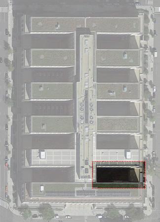 Child Care Center Playground is located at the first-floor level courtyard area at the southeast corner of the building. Playground is located between wings 1 and 2 on 18th street side of the building and is over Garage area. Playground can be accessed from two egress doors from Child Care Center located on first floor of wing 2 East.