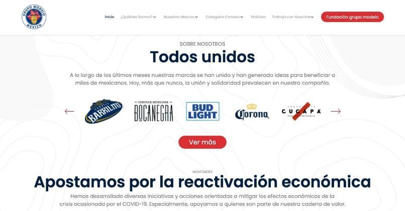 Grupo Modelo es una de las cerveceras más grandes de México, y es la creadora de la Corona, su producto más exportado a todo el mundo. Su sitio web contiene muchas páginas que hablan de su historia, educan sobre la cerveza y su producción, comparten noticias sobre iniciativas sociales y programas de becarios, publican vacantes y otras novedades que interesan a consumidores, inversores y distribuidores.