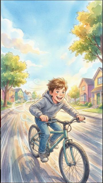So I hop on my bike and zip down the street—ZOOM! I’m flying too.