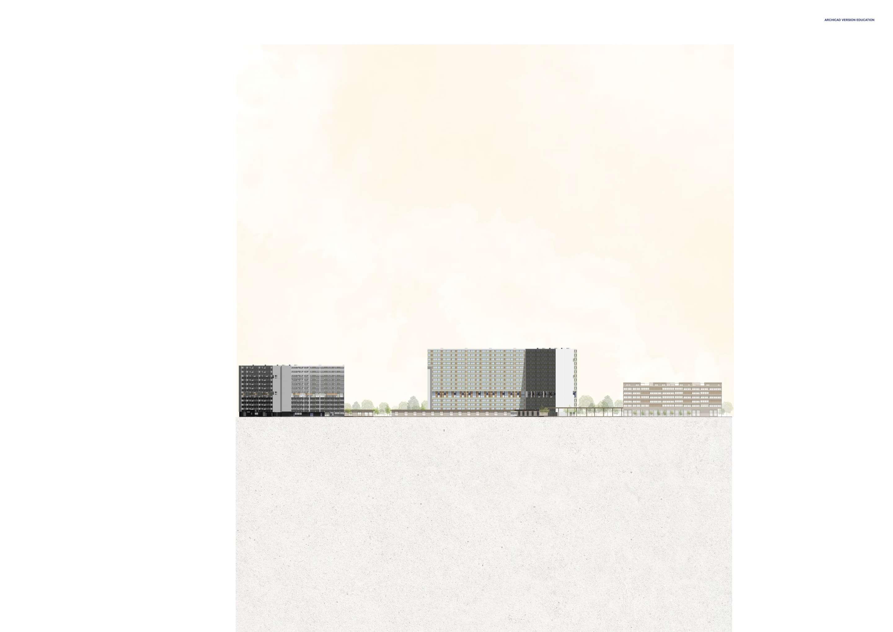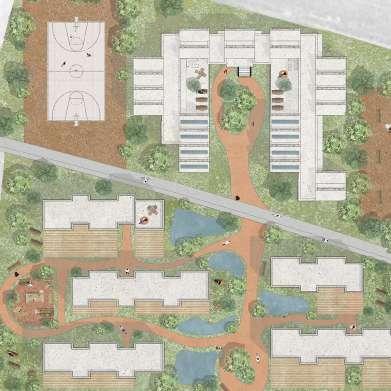 Après les travaux de réhabilitation, un nouveau concept a été envisagé pour prolonger cette dy namique. Une galerie serpente le long des deux tripodes, abritant des espaces collectifs pour les résidents et guidant vers le nouveau projet, caractérisé par un vaste rez-de-chaussée ouvert.