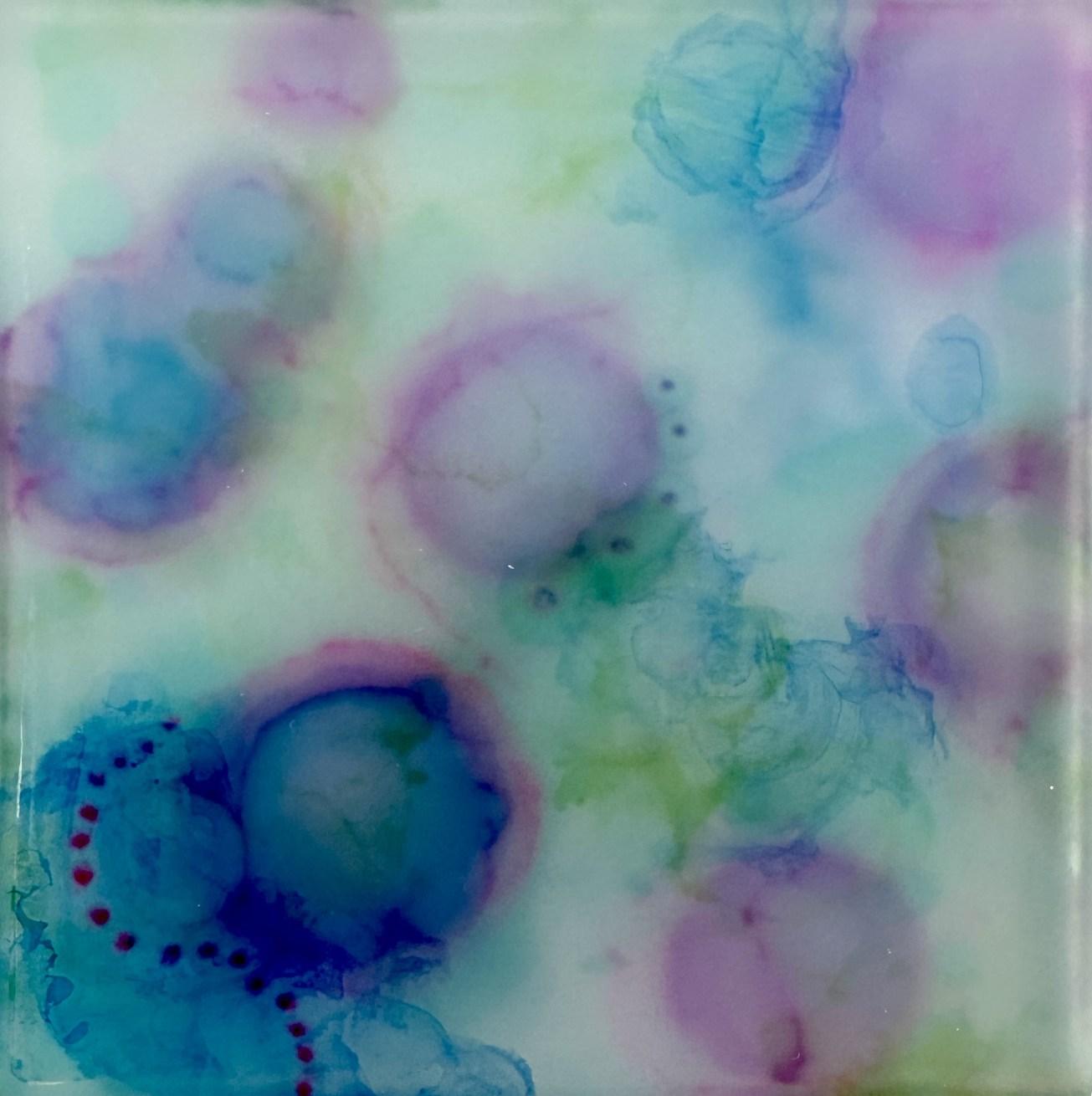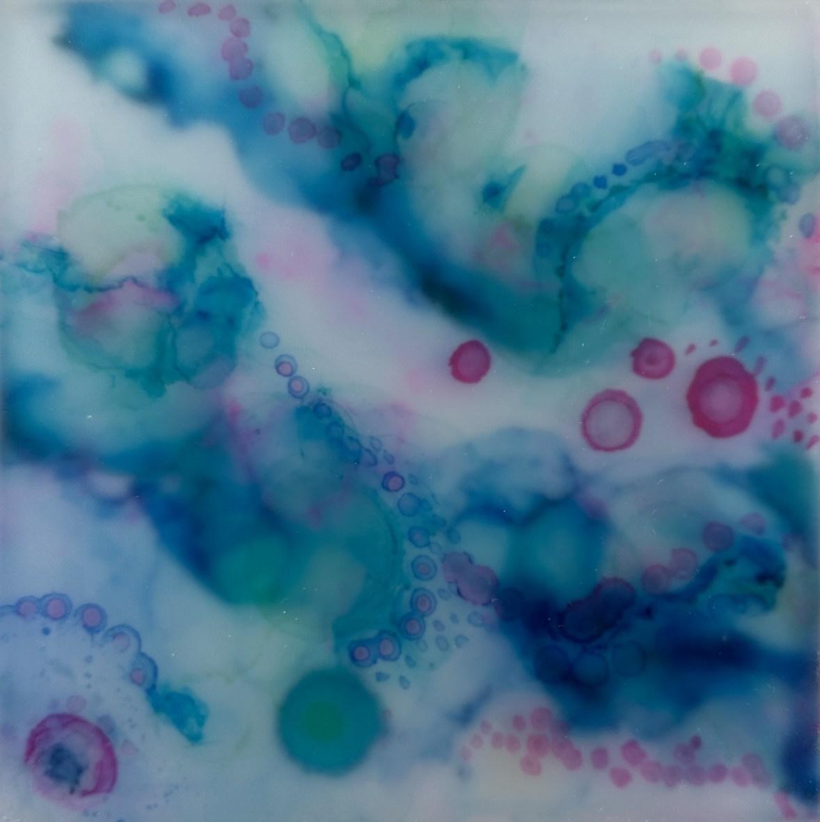 OceanDreams(anemone), (2026) Resin, alcohol ink, and wax on canvas, 6 x 6 inches