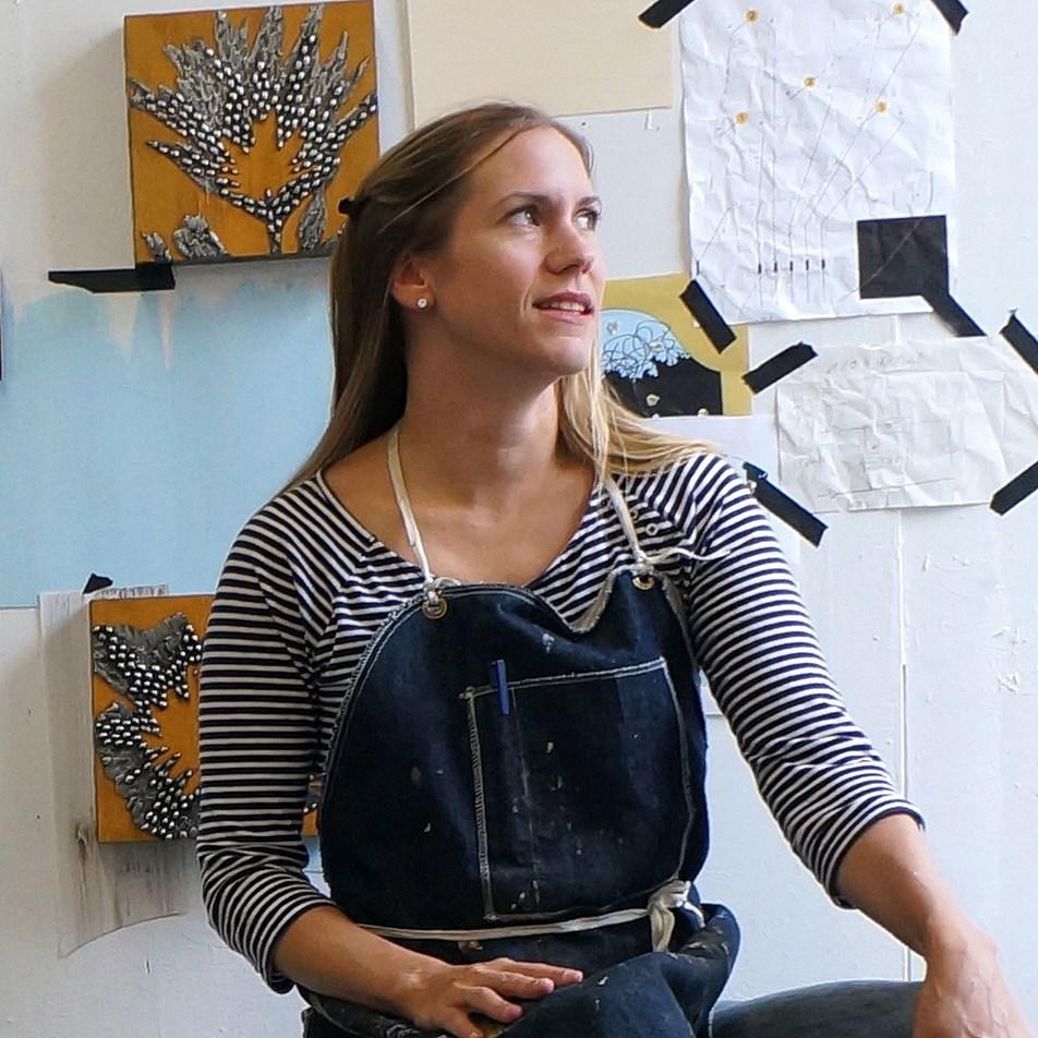 Liz Bloomfield is a San Francisco native whose work is inspired by the forms, colors, and textures of the natural world. With a background in both art and science, she studied neuropsychology as an undergraduate and conducted research on human and animal behavior. She later worked as a biology technician for aquatic species at a science museum.