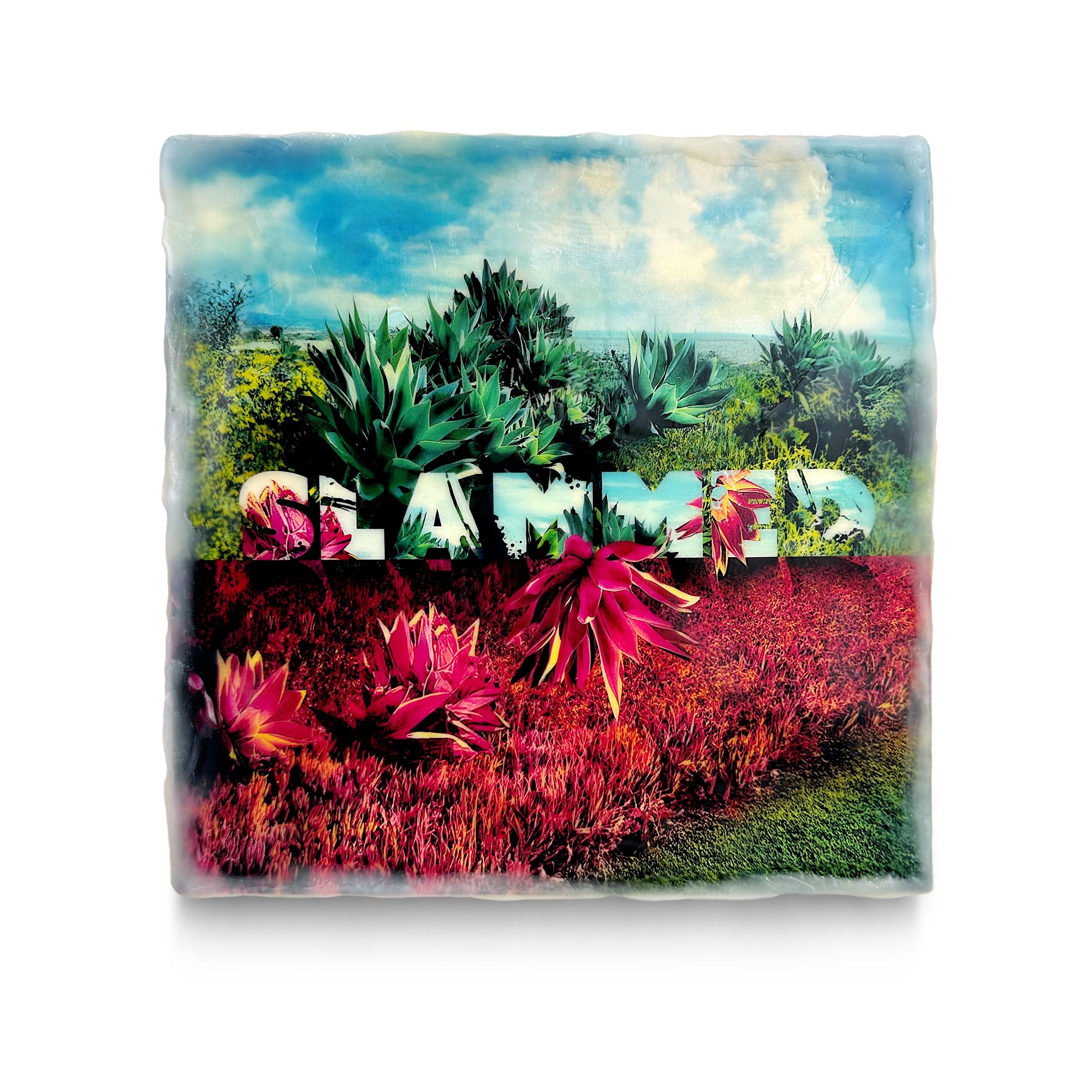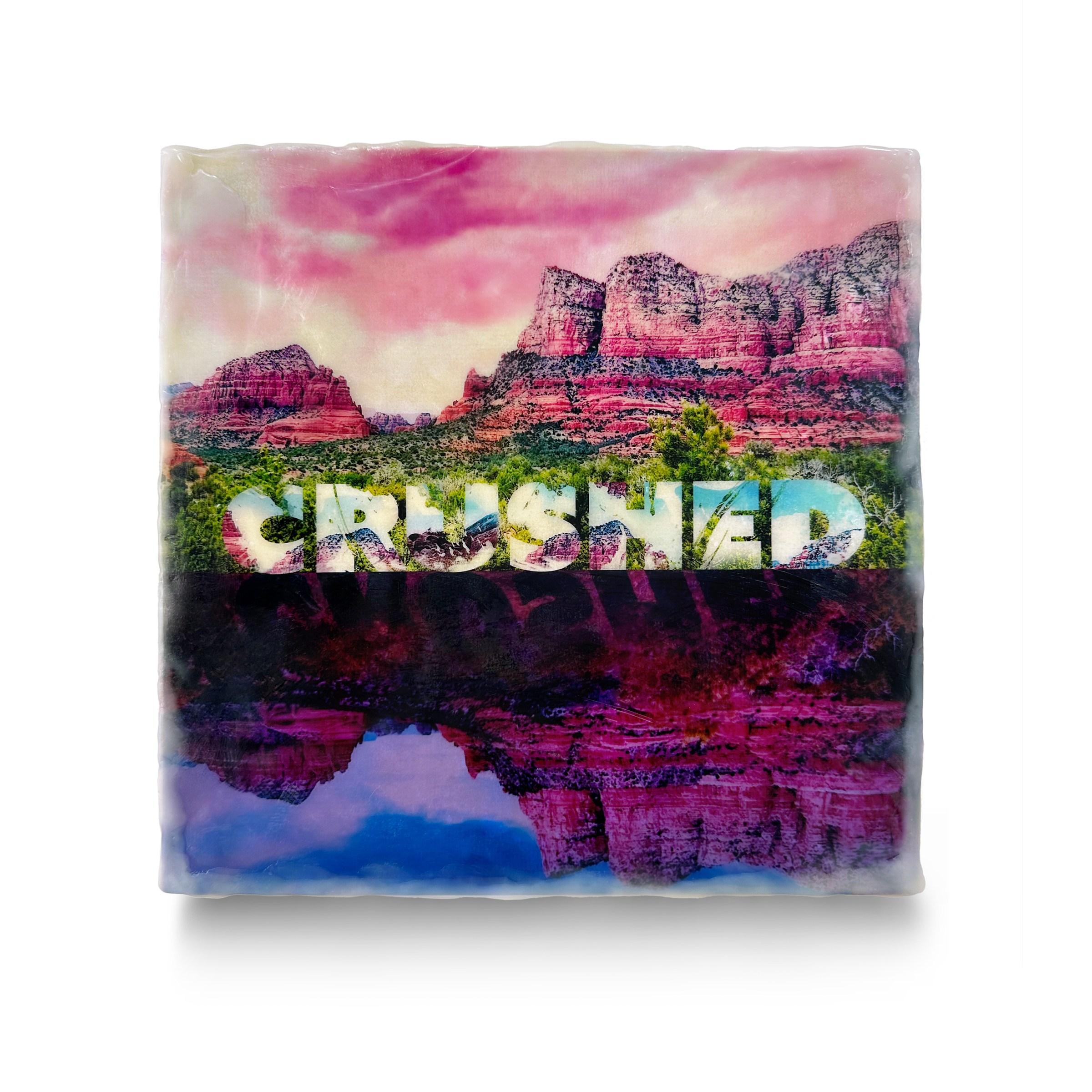 Jeannine Henebry and Lucky Rapp combined two styles in a collaborative process to create new pieces for the group exhibition SurfaceTension . The Artists integrated Lucky's text using transparent acrylic on the surface of Jeannine's photographs displaying the visual relationship between imagery and language. The decision to use transparent acrylic was to keep the integrity of Jeannine's images while incorporating Lucky's subtle words, only visible at certain angles. This series is the result of merging two mediums together and studying the relationship between surface and tension. Jeannine's image ratios and Lucky's word choices directed the scale of each individual piece. The Artists are fascinated with this new direction that opened up endless possibilities through collaboration.