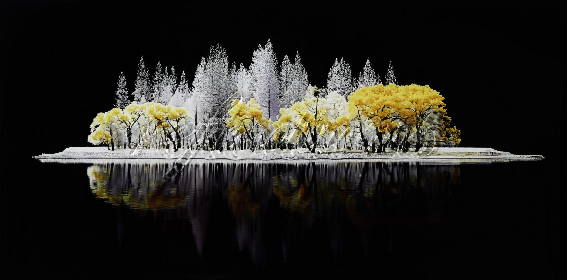 Mixed media: photograph, printed dye sublimation on aluminum, acrylic, resin, 16.5 x 33 x 2.5 inches
