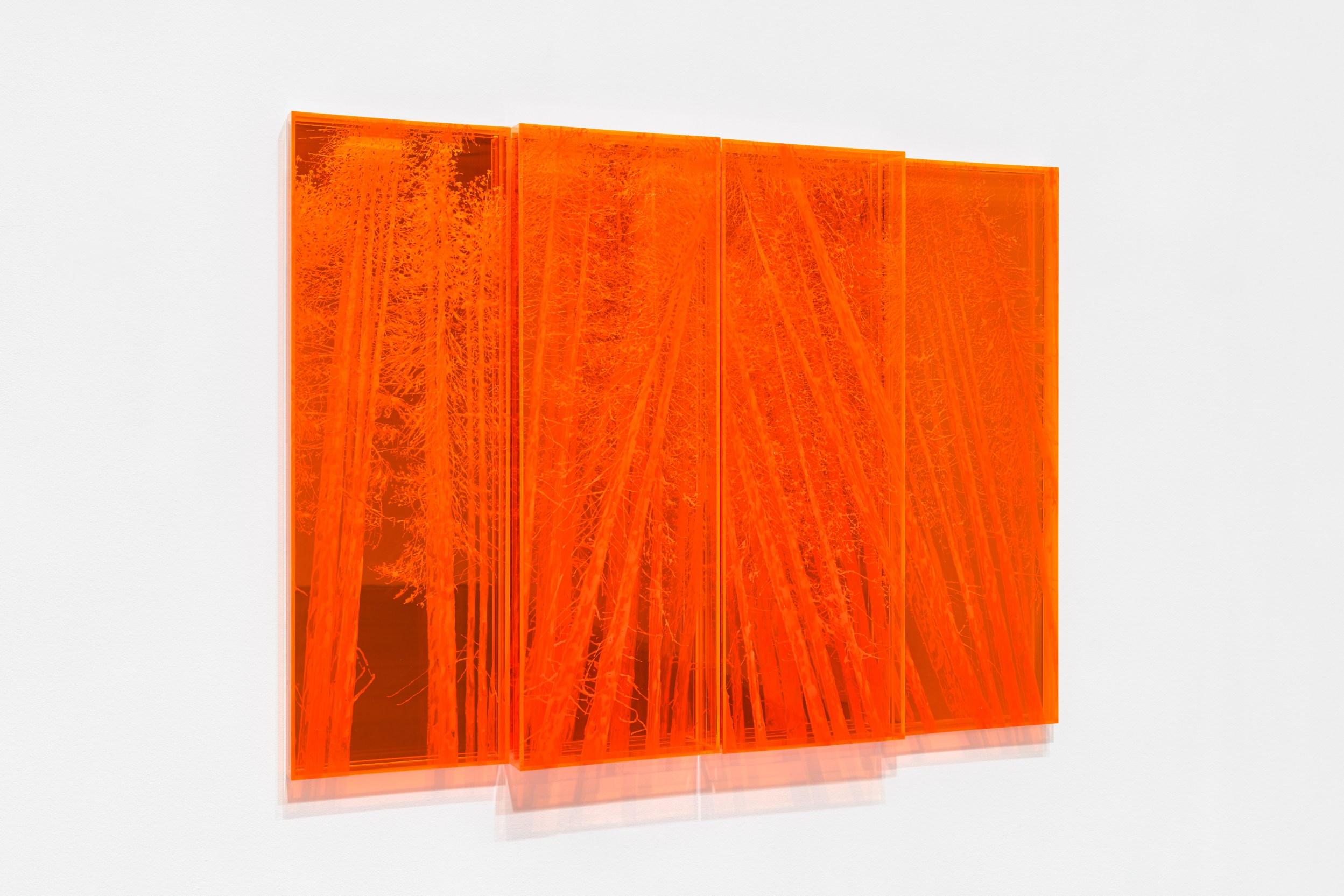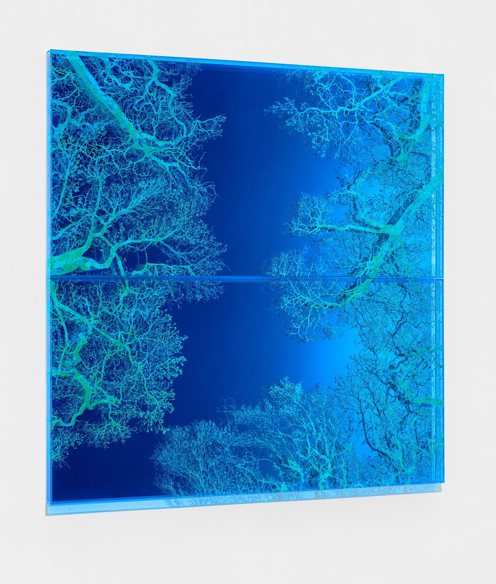 Natalya Burd has traveled extensively in Europe, Asia, South America and the North American continent, pursuing her love of the natural world. Burd has camped and hiked in national parks, forests, preserves and wilderness areas throughout the United States, sites that inspired her recent immersive installations. Featuring hand-painted imagery on colored plexiglass mounted to reflective mirrors, her constructions envelop her viewers in a shimmering atmosphere, evoking the transience of human experience against the enduring natural world.
