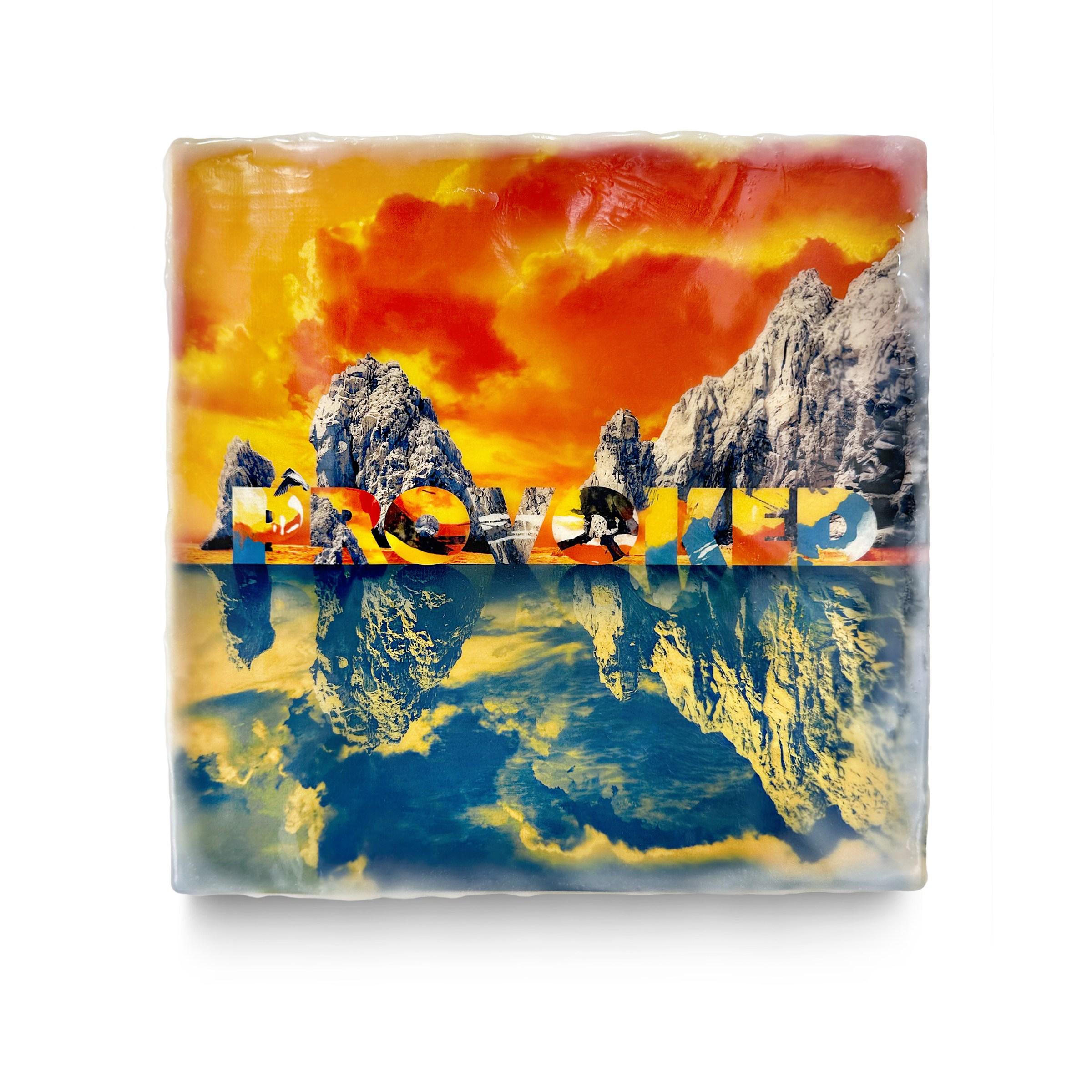Mixed media: photograph, printed dye sublimation on aluminum, acrylic, resin, 13 x 20 x 2.5 inches
