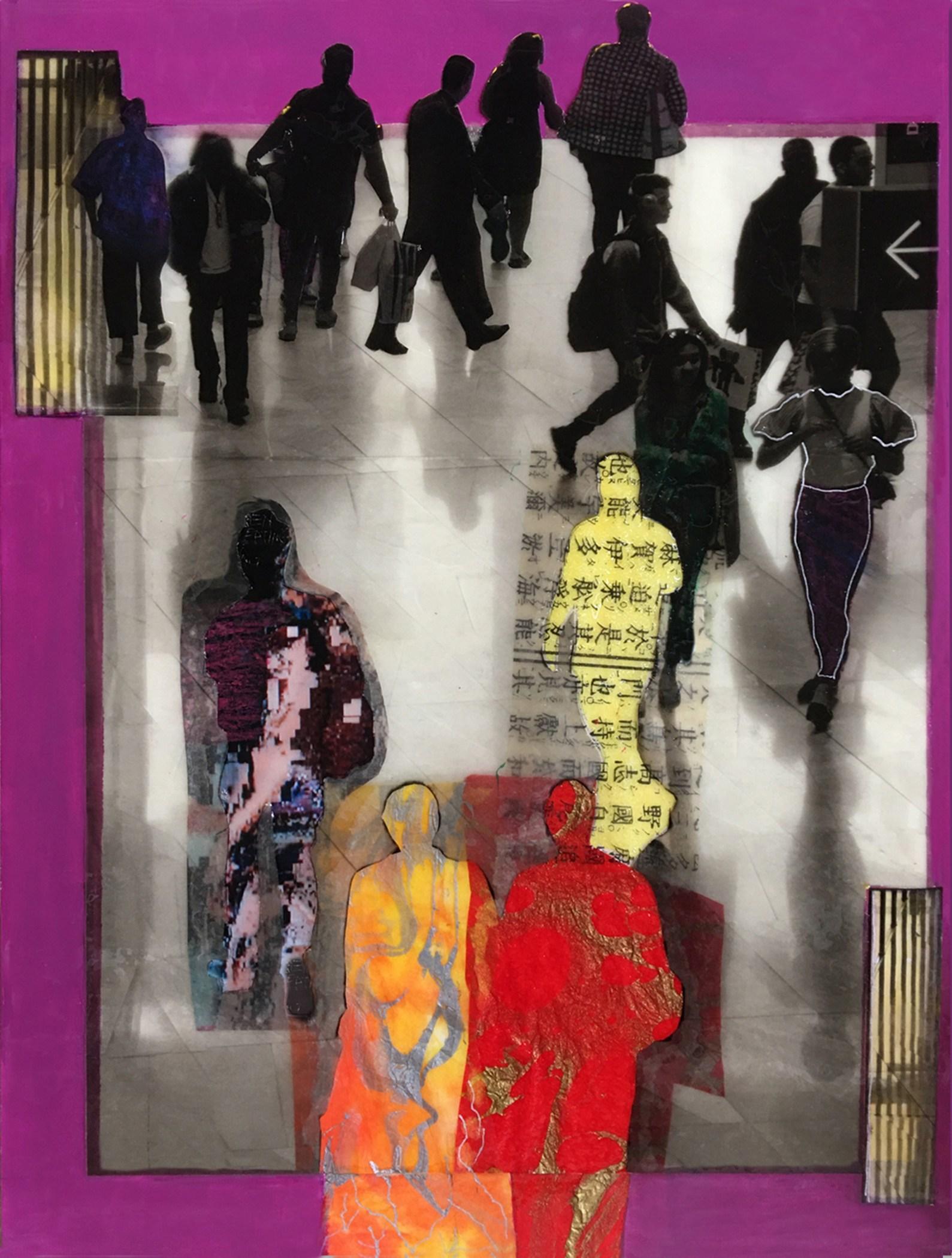 Conceptual digital collage, rice paper, encaustic on wood, 8 x 8, 10 x 10 inches framed